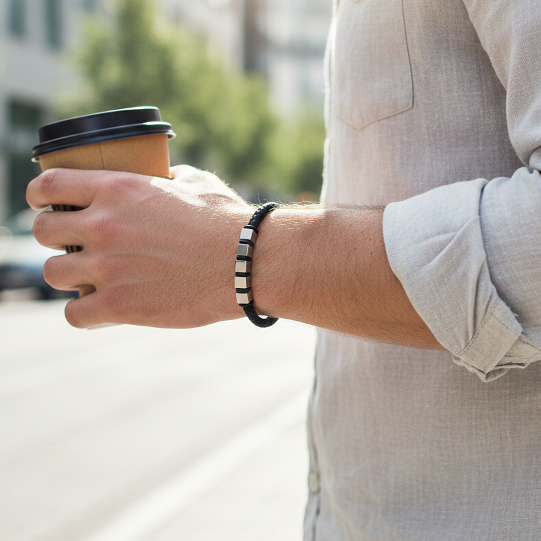 Lee Cooper Men's Bracelet - Silver/Black, LC.B.01373.351