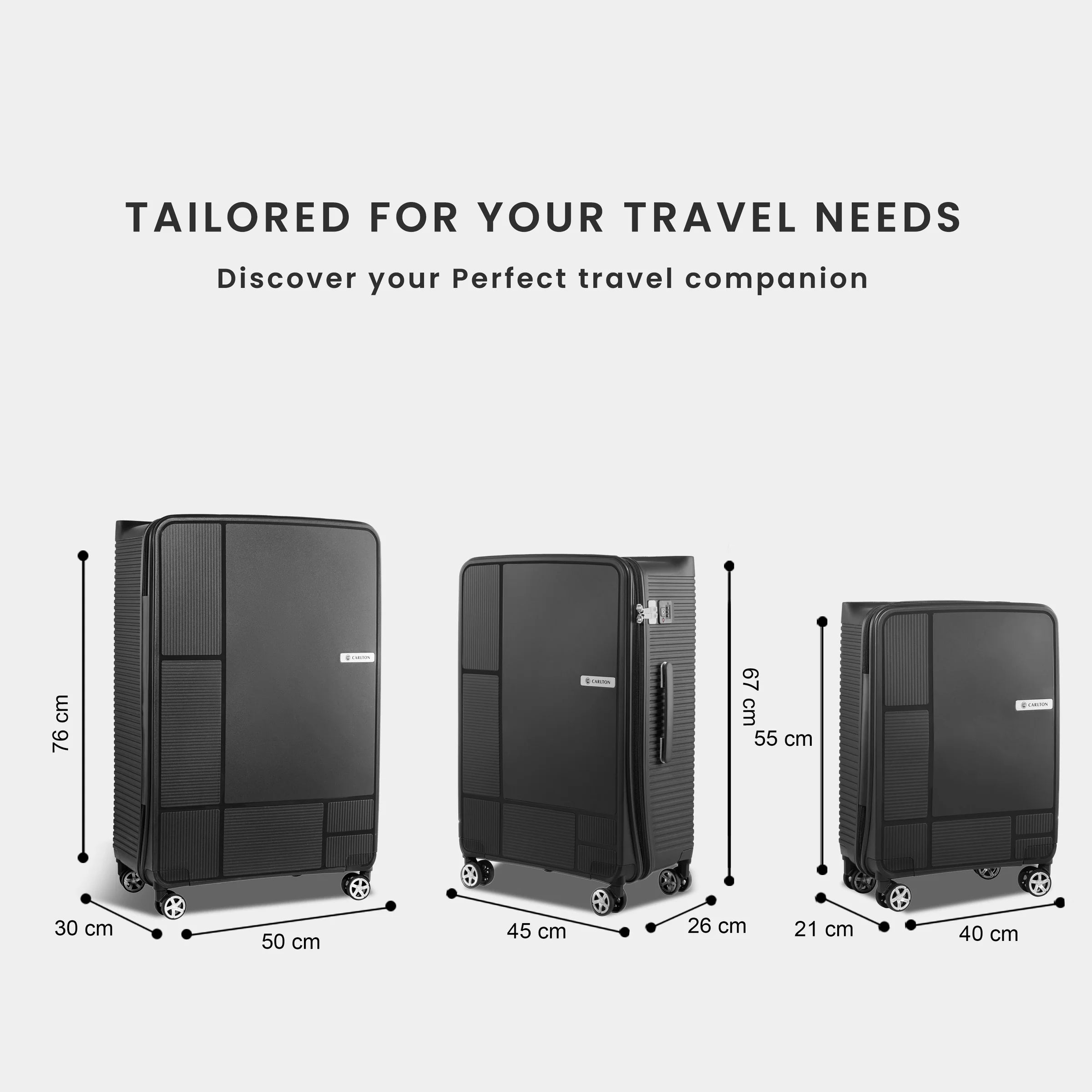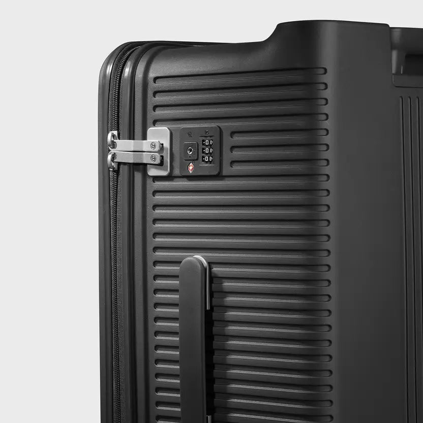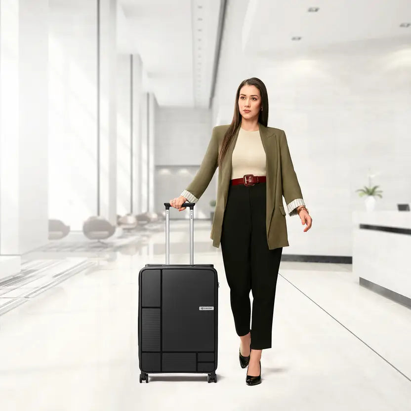 The Carlton Globetrotter 67cm trolley combines durability with exceptional mobility for the discerning traveler. Its hard-shell construction protects contents from impact and weather, while the innovative 360° 8-wheel system delivers smooth, effortless maneuverability through airports and terminals. The spacious 67cm frame accommodates extended trips without compromising handling. Engineered for frequent flyers who demand reliability and performance, this black-finished piece integrates seamlessly into any travel wardrobe while maintaining the structural integrity required for rigorous journeys.
