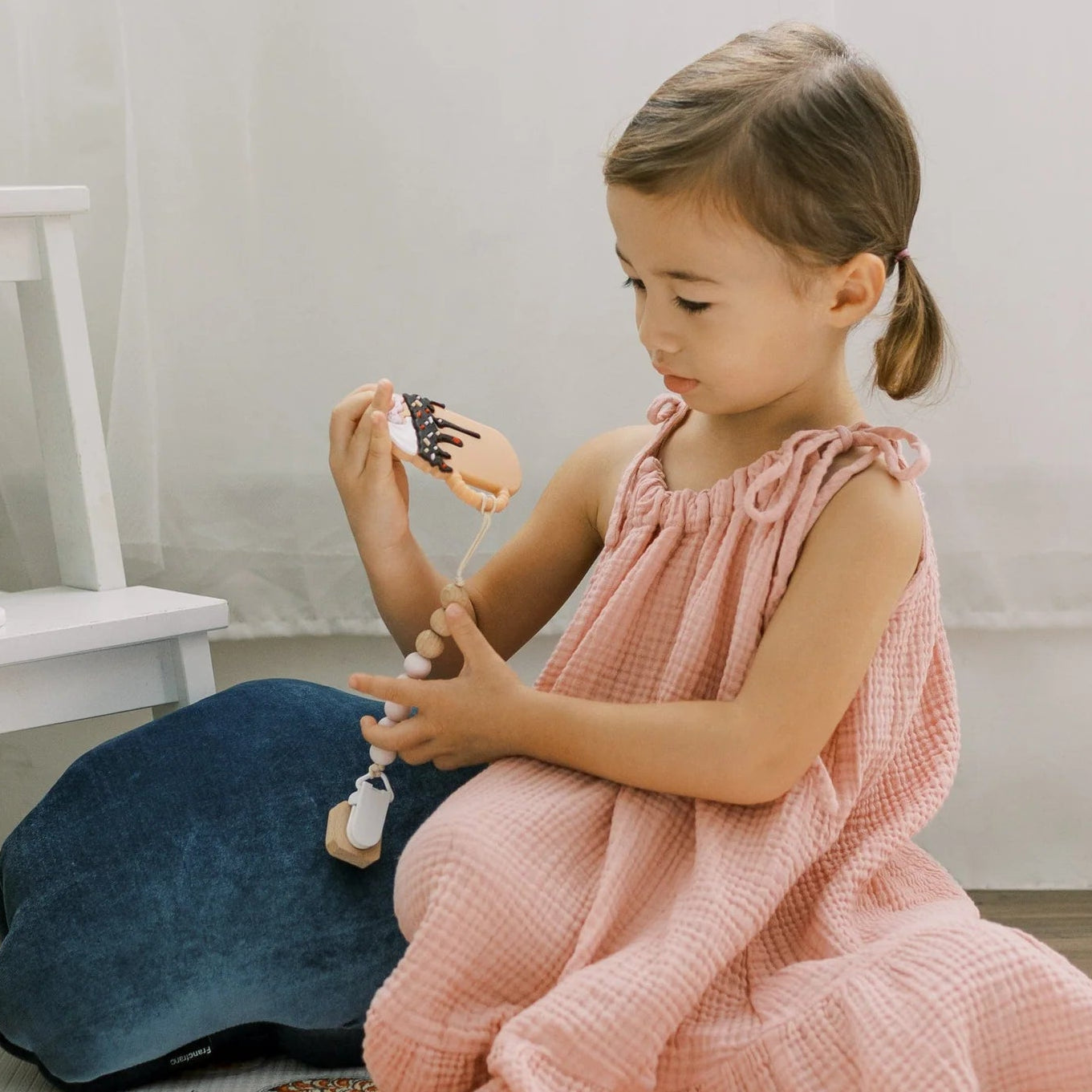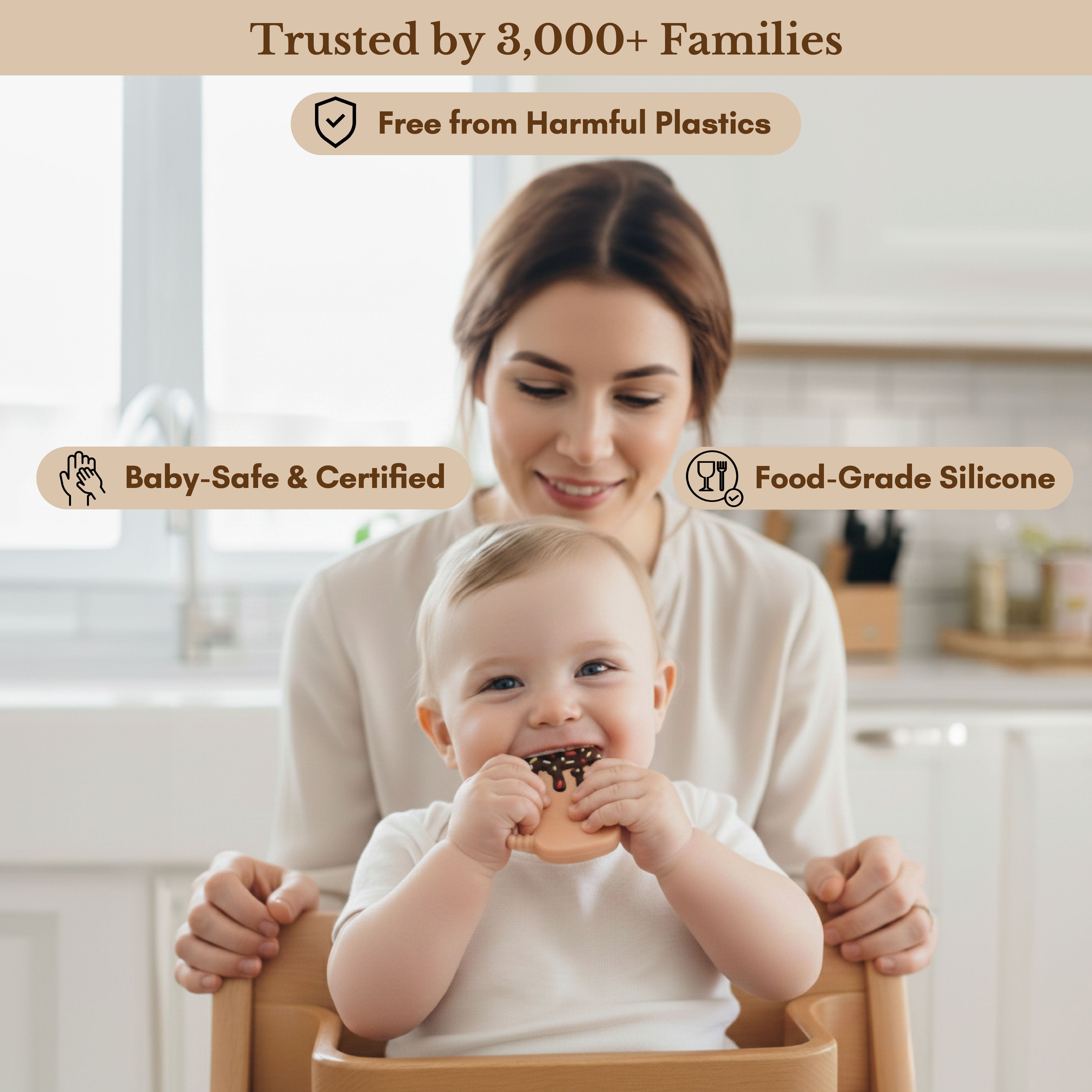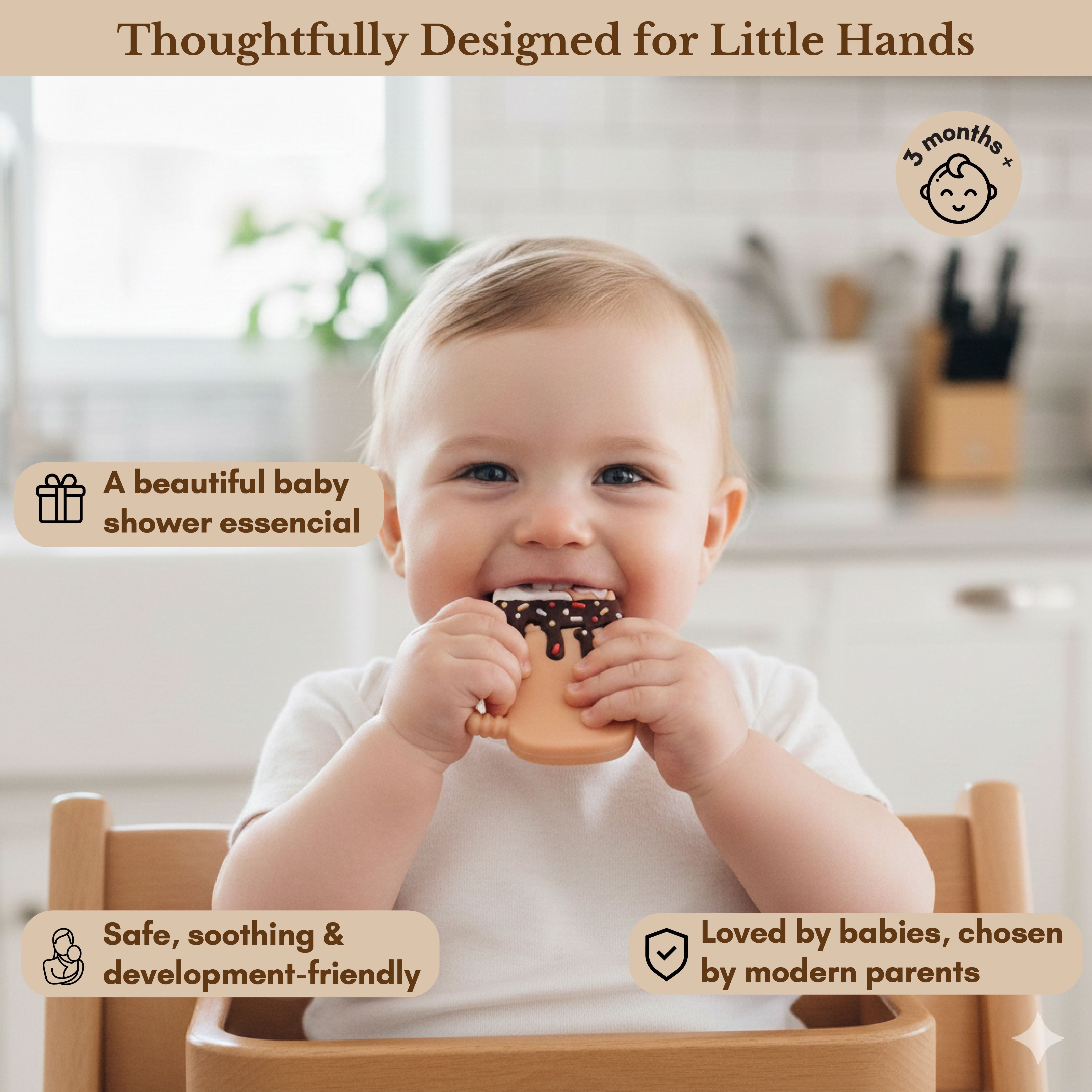 Extra sprinkles please! Made of food grade silicone, our monster milkshake teether offers sweet relief for teething babies, with engaging and raised sprinkle textures on both sides. It can even be stored in the refrigerator for a few hours before offering it to your baby for extra comfort! Also available in strawberry colours.