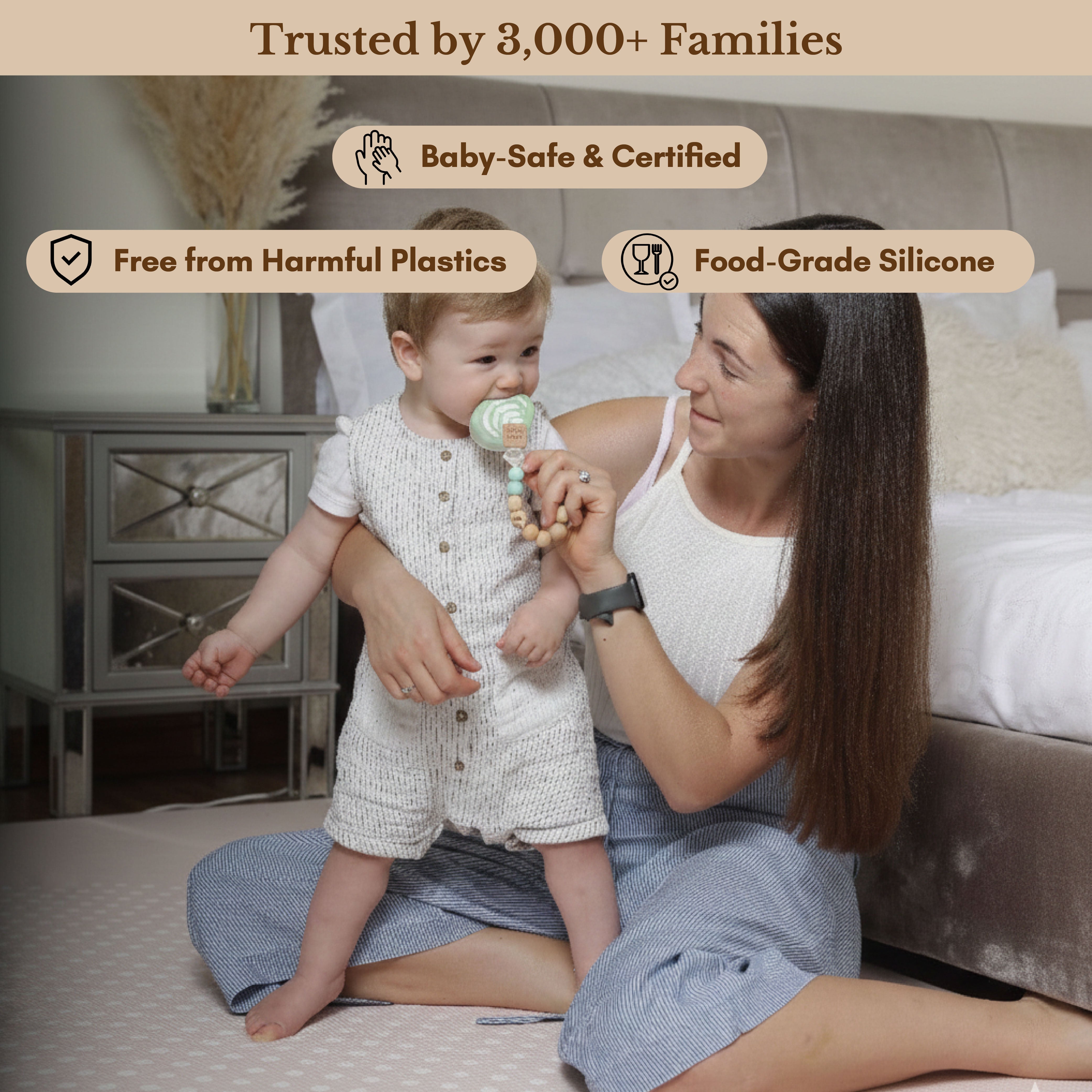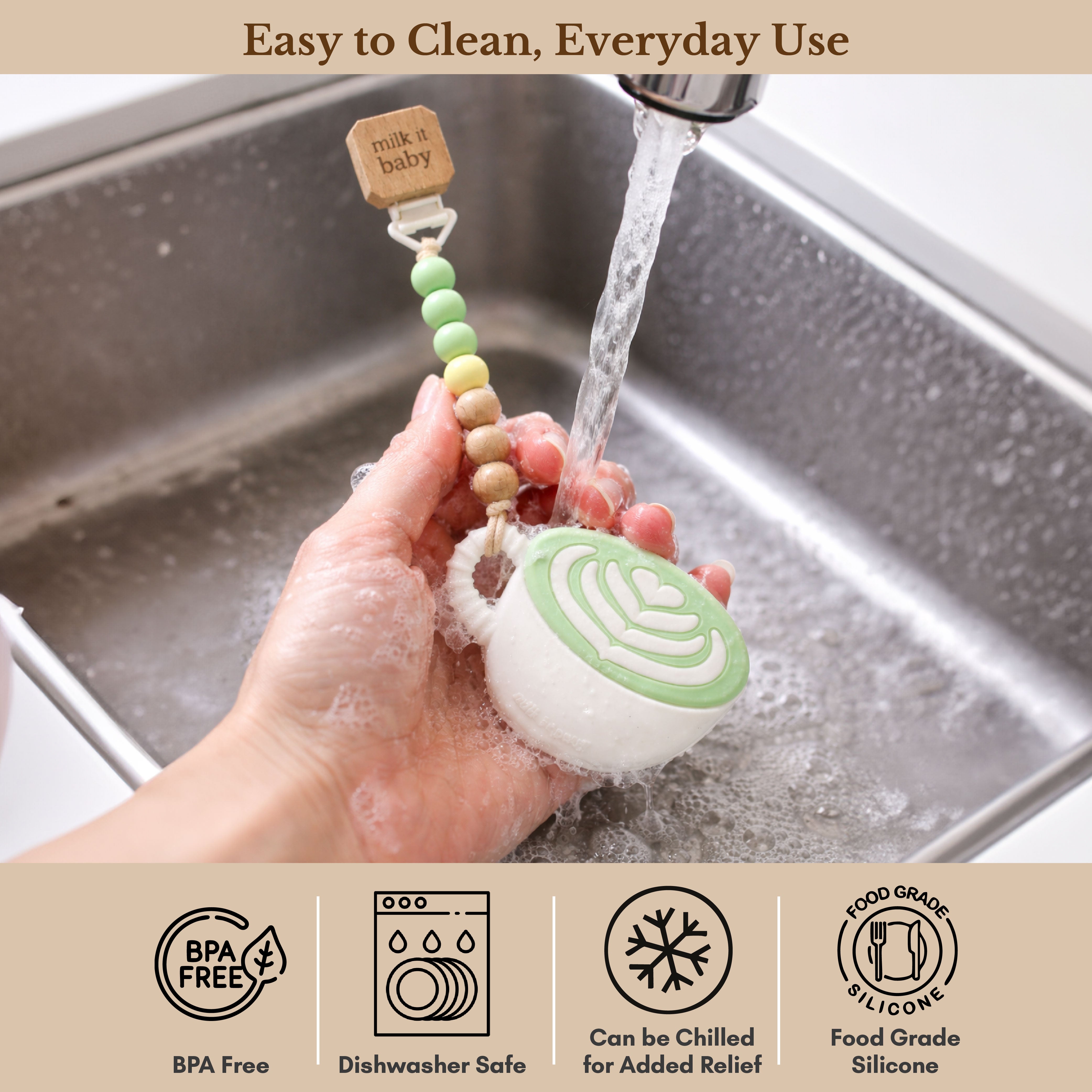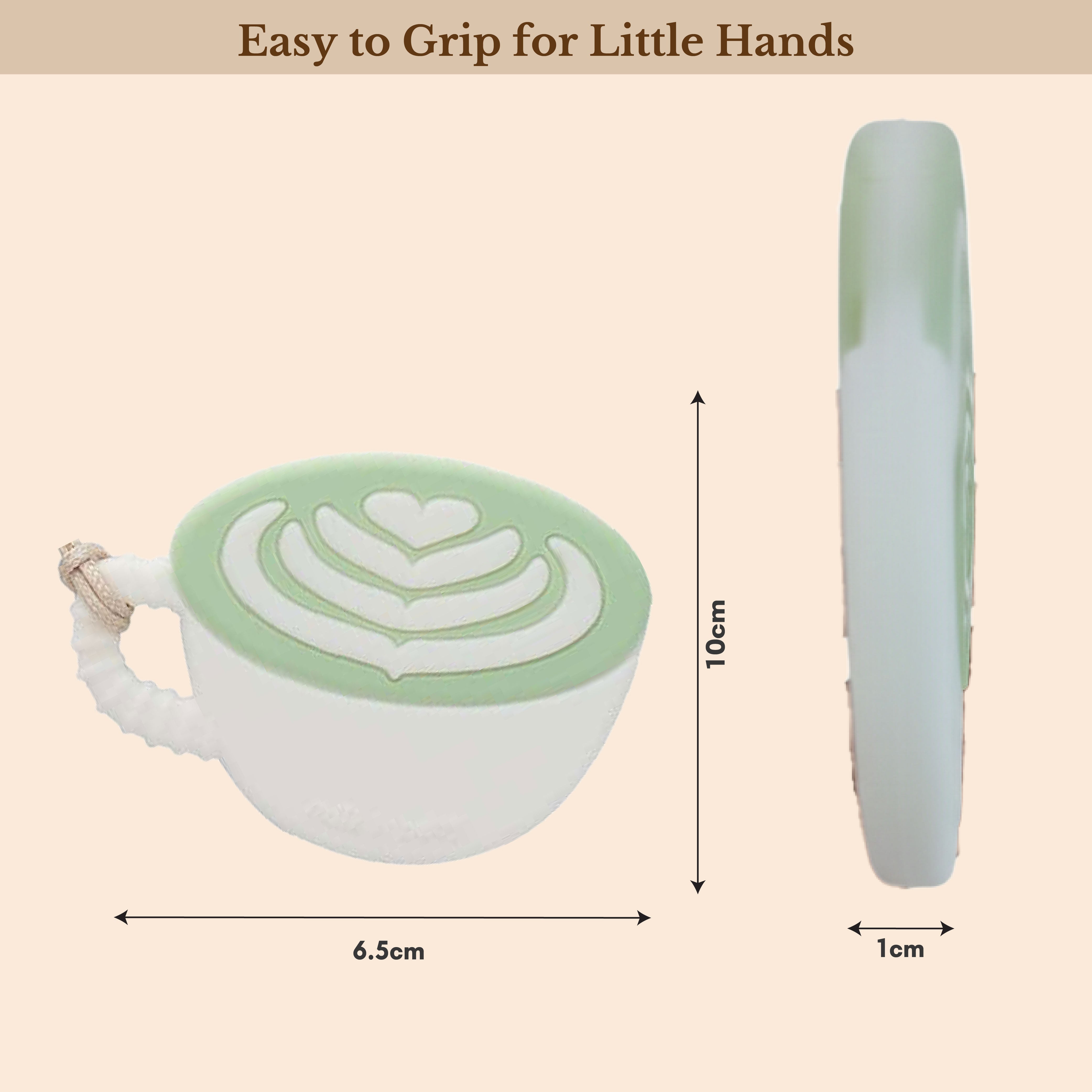 Why should grown-ups have all the fun? Our ‘I Love You So Matcha Teether' is our trendiest design yet, inspired by our fabulous millennial mamas' favourite tea time drink! Our matcha latte design features soothing textures on both sides along with a nubby grooved handle and raised latte art design. Keep chilled in refrigerator for a few hours before offering it to your child for maximum results.