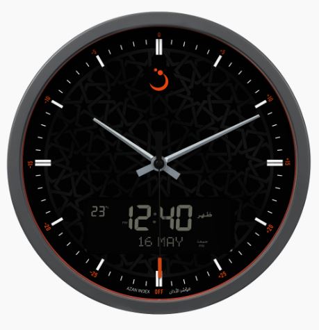 Alfajr Islamic Prayer Wall Clock Ana-Digital Black With Azan And Prayer Times, CR-23BLACK
