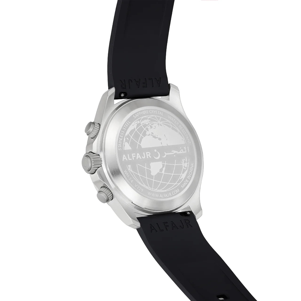 Alfajr Islamic Prayer Mens Watch Ana-Digital Black Dial With Black Rubber Strap, WH-24SILVERRUBBER