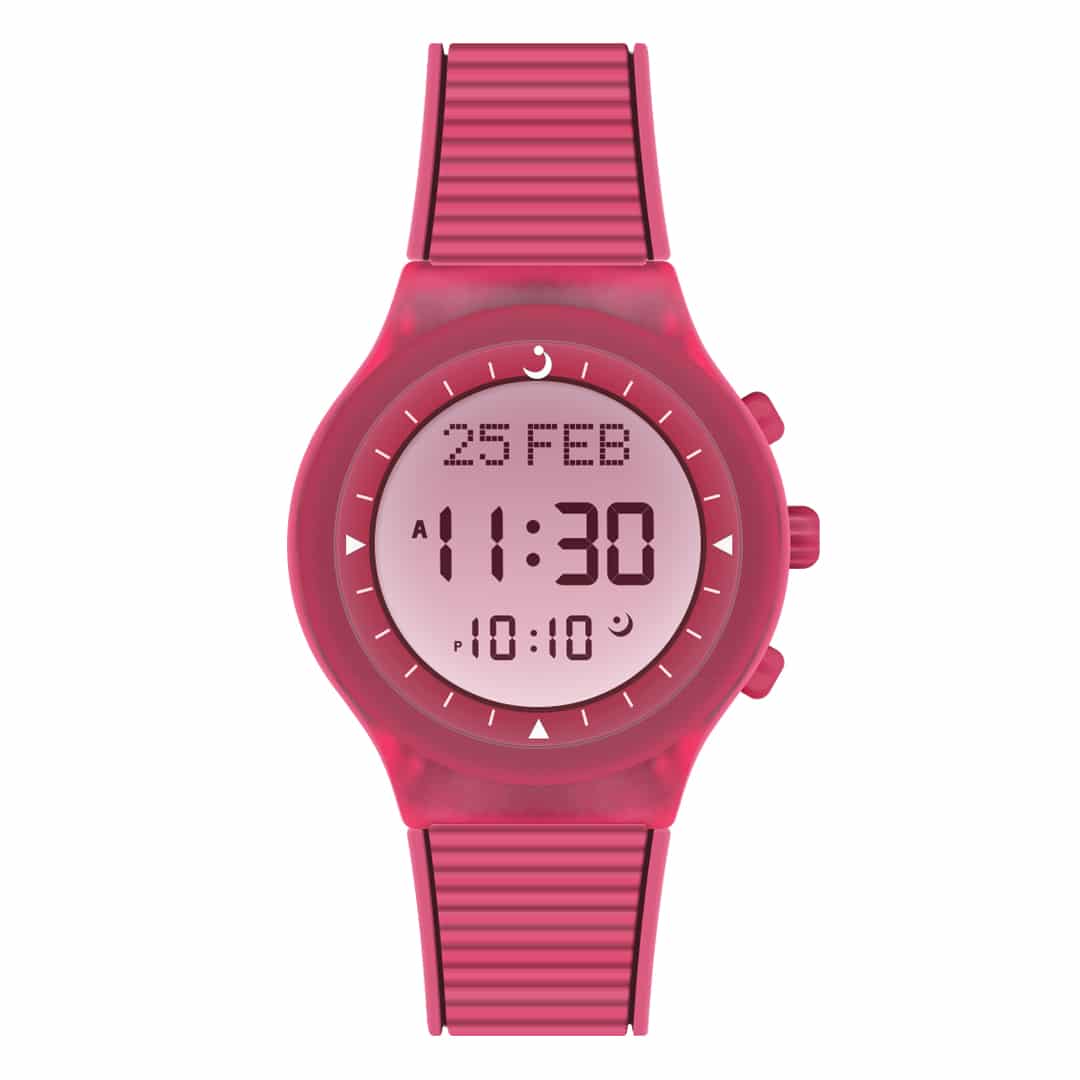 Alfajr Islamic Prayer Unisex Watch Digital With Pink Rubber Strap, WY-16PINK