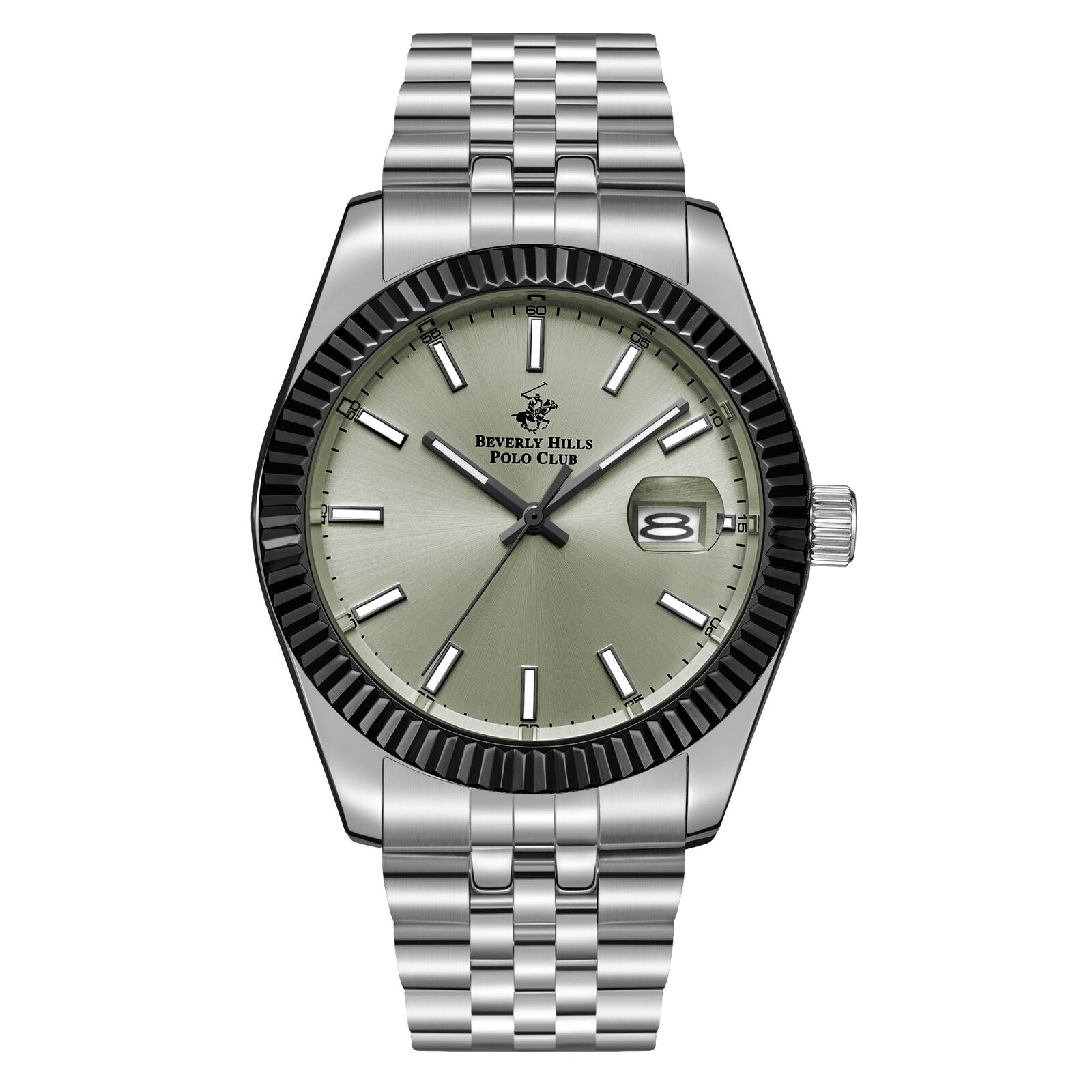 Beverly Hills Polo Club Men's Watch Analog Black Dial with Silver Stainless Steel Band, BP3018X.360