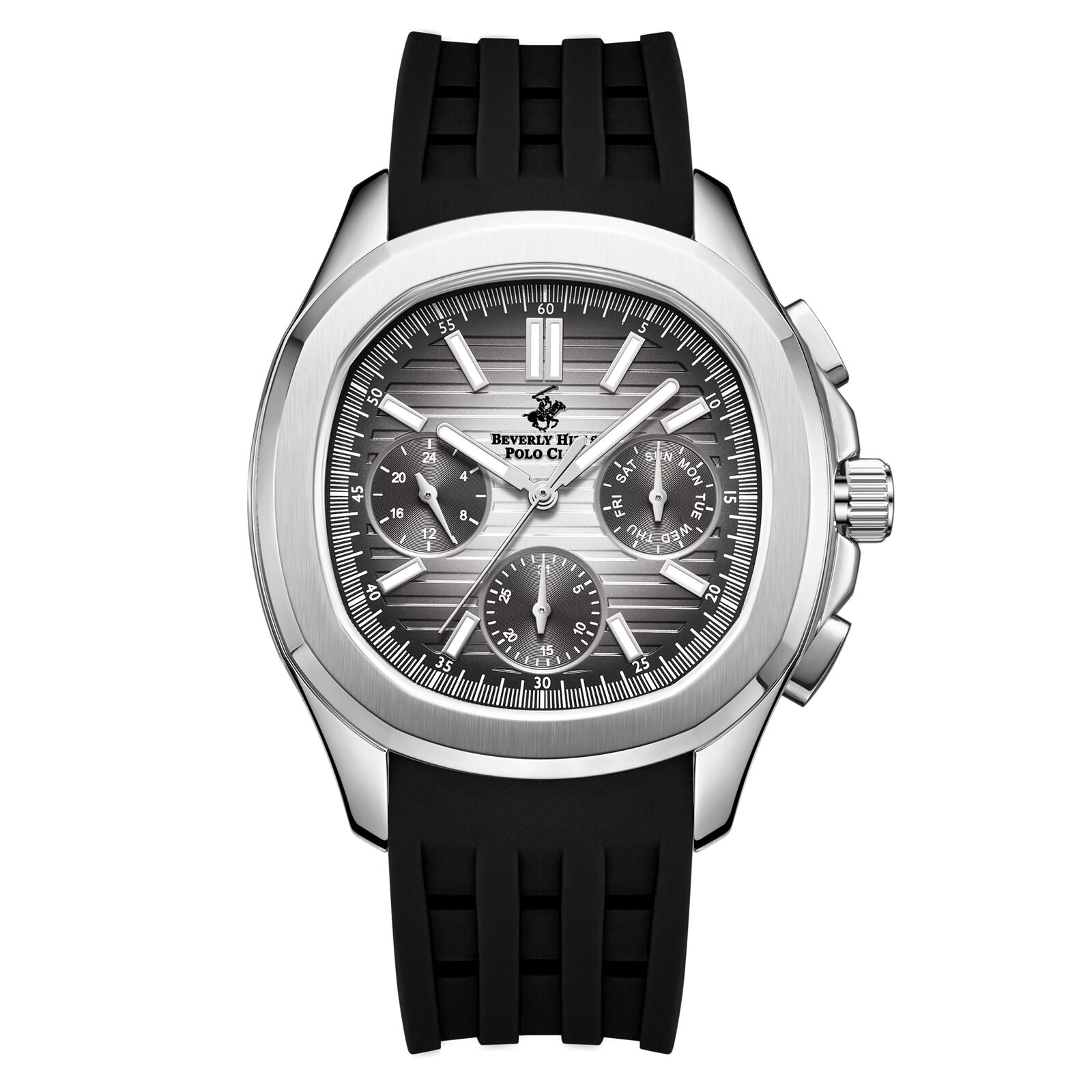 Beverly Hills Polo Club  Men's Analog Watch, Black Dial Multi-Function 3 Hands Black Silicon Strap, BP3211X.351