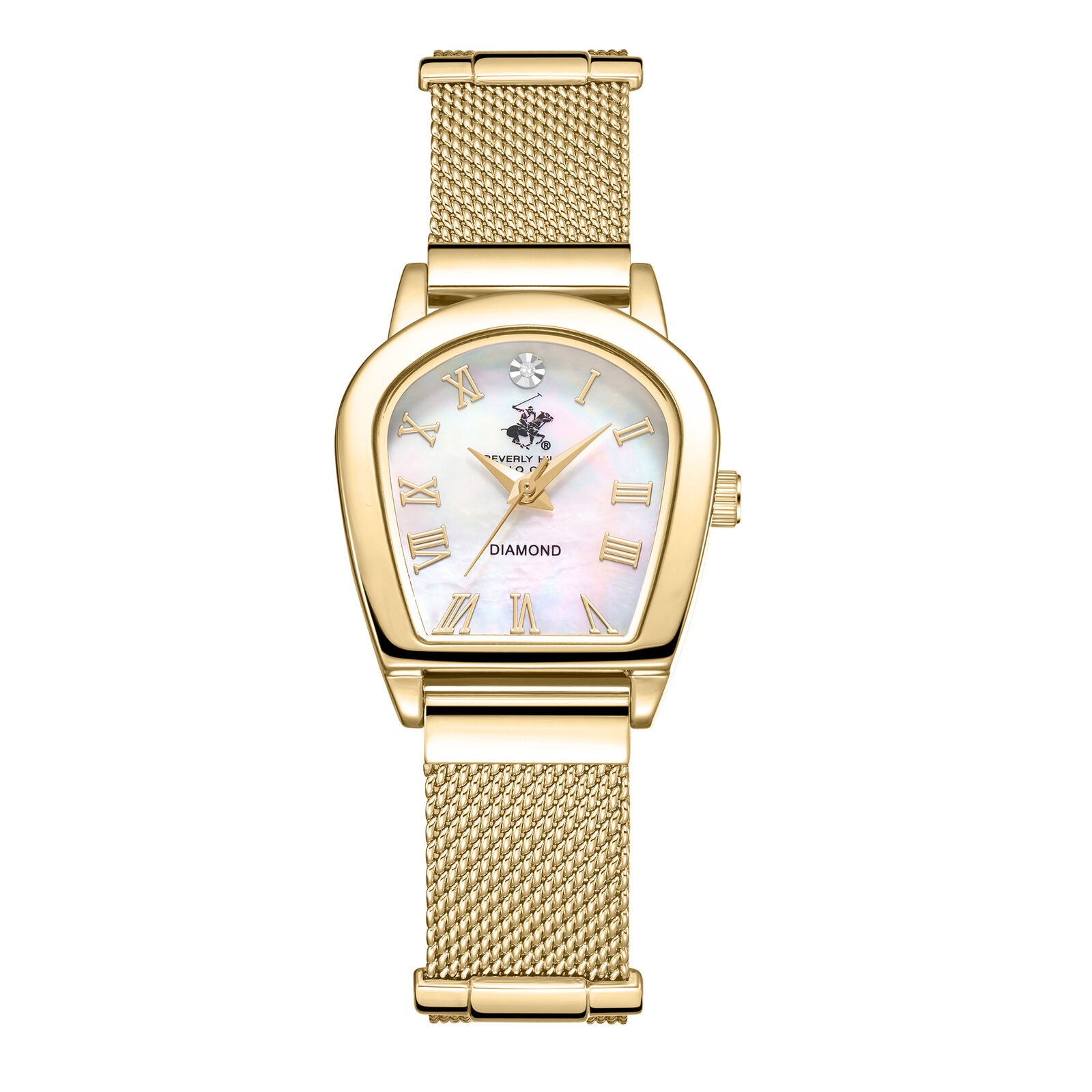 Beverly Hills Polo Club Women's Analog Watch, Mother Of Pearl Dial With Golden Stainless Steel Mesh Band, BP3826C.120