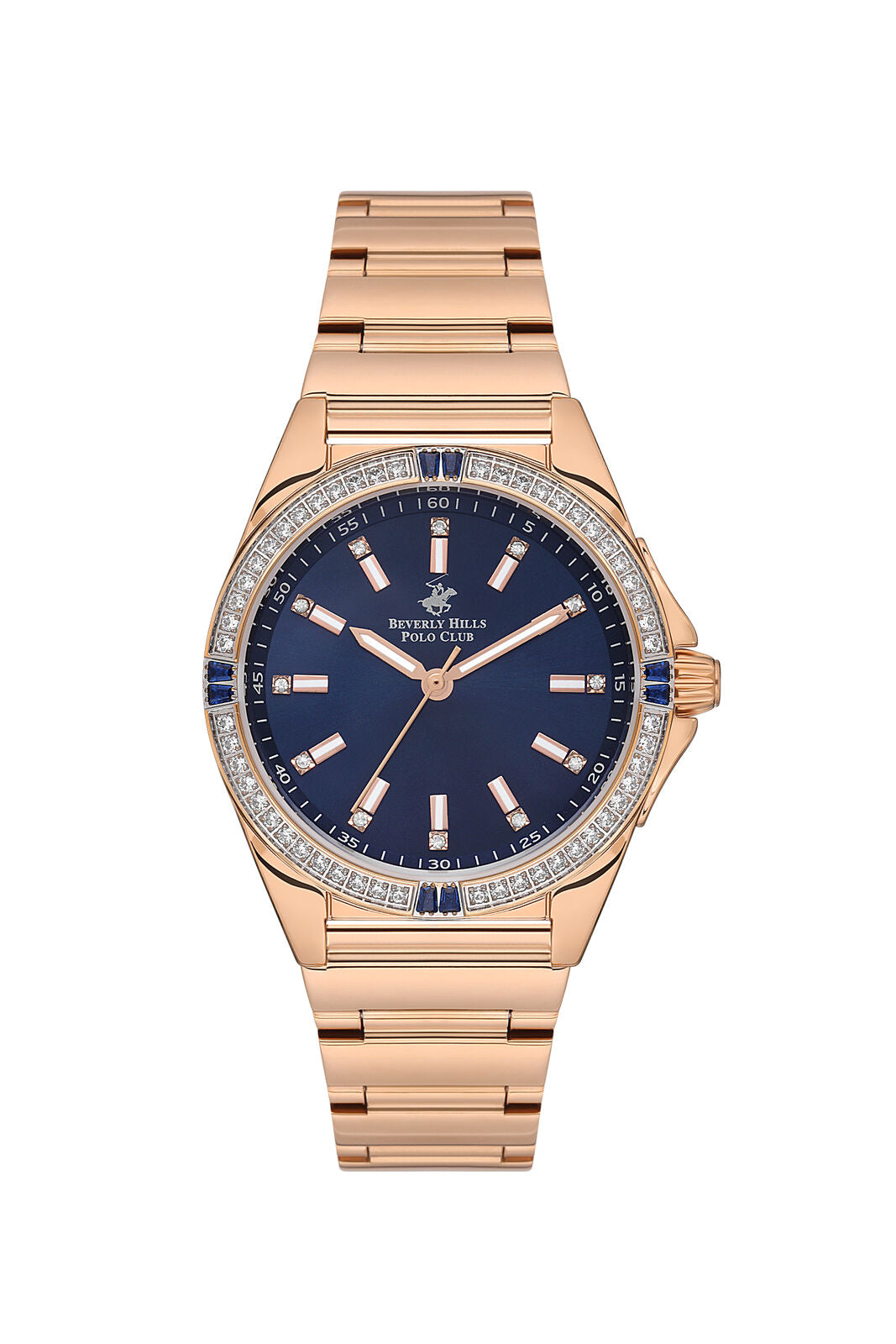 Beverly Hills Polo Club Women's Watch, Analog, Blue Dial, Rose Gold Stainless Steel Strap, BP3587C.490
