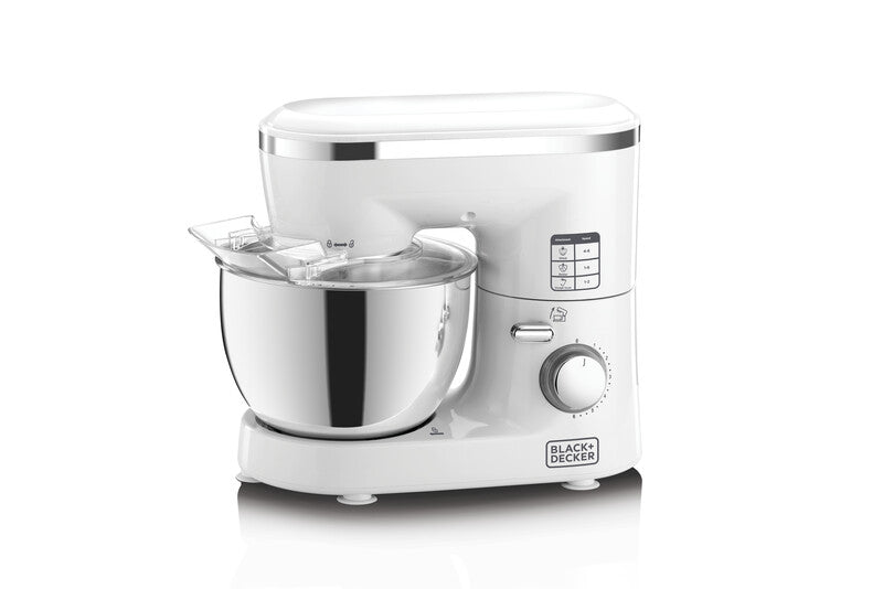 Mix with ease using the Black+Decker SM1000 Stand Mixer. 1000W motor, 6 speeds, 4L stainless steel bowl, and 3 attachments. Ideal for all your baking needs – order now!