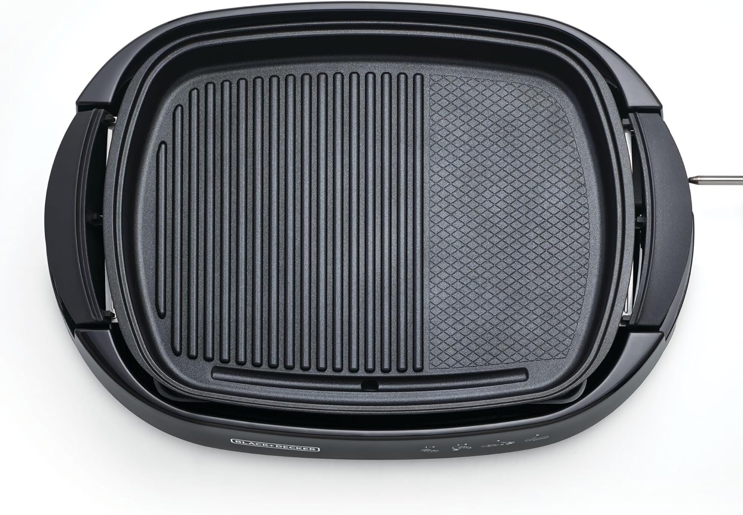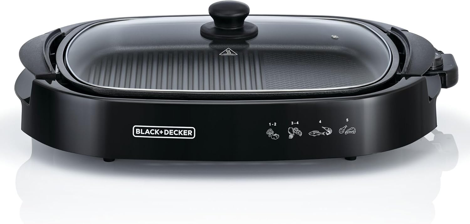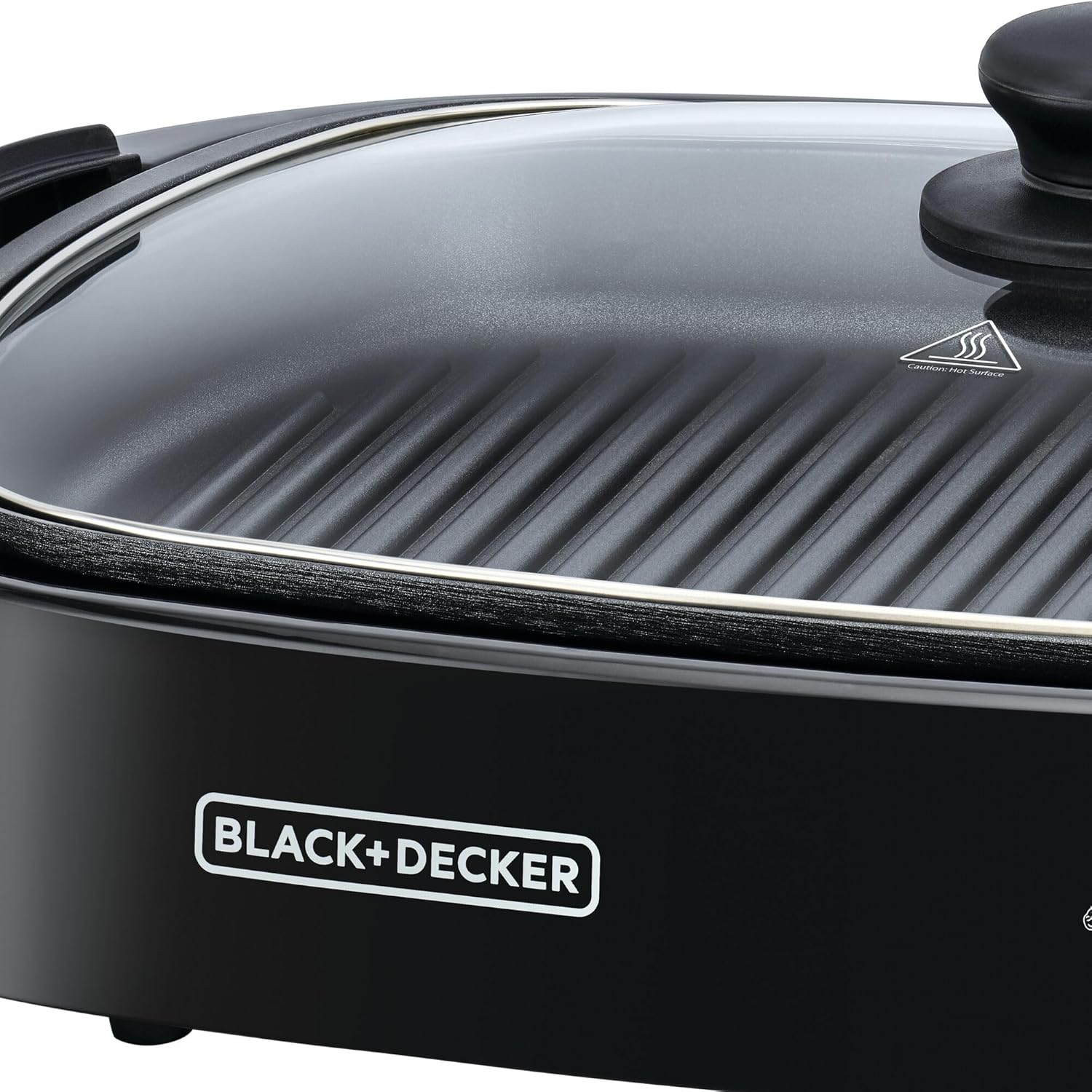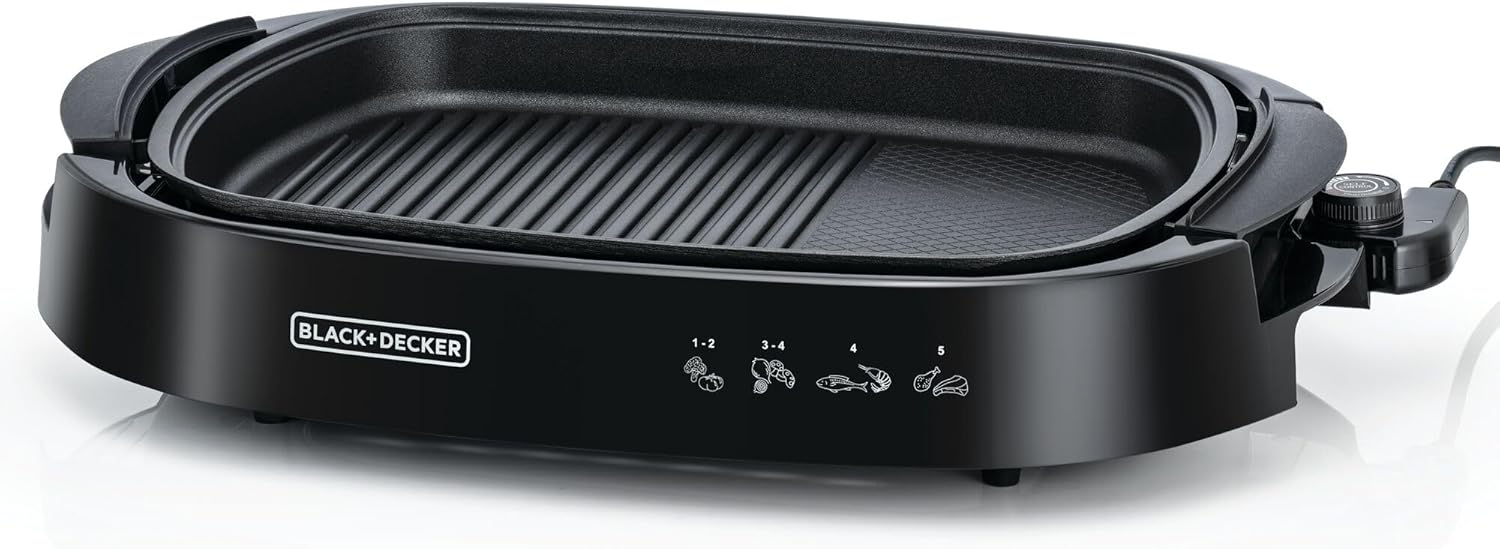 1500W Black+Decker health grill with open flat design and non-stick plates. Perfect for grilling sandwiches, meats & veggies. Easy to clean. Buy now!