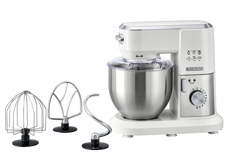Prep like a pro with Black+Decker MKM100. 6L stand mixer with 1000W motor – perfect for baking, whipping, and kneading. Order online now.