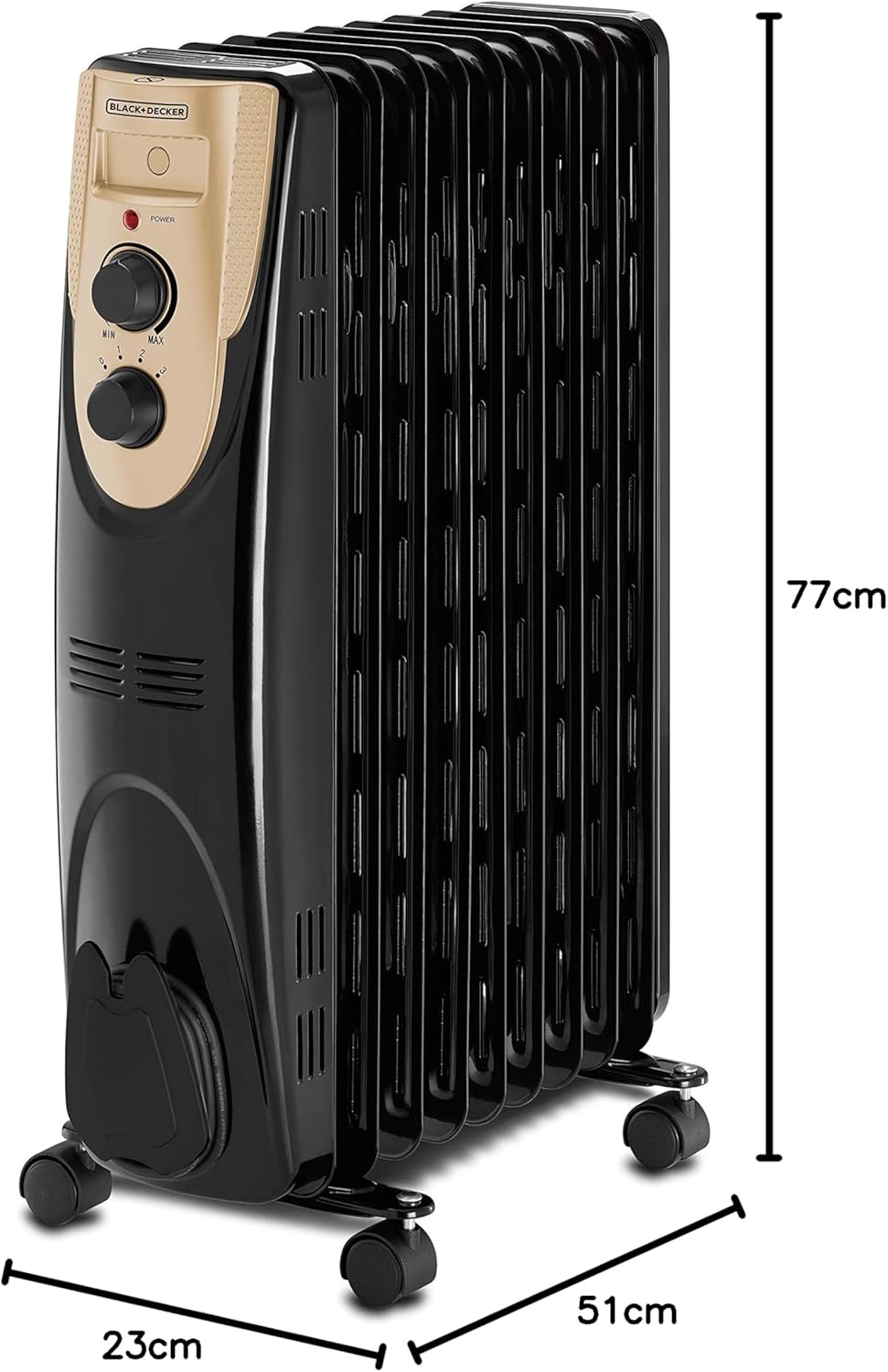Oil-filled, 9-fin, 2000W radiator by Black+Decker. Heats rooms quickly and quietly. Energy-efficient and portable. Order today.
