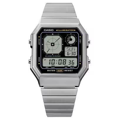 Casio Men's Watch Digital Dial Silver Dial with Silver Stainless Steel Band, A130WE-1ADF