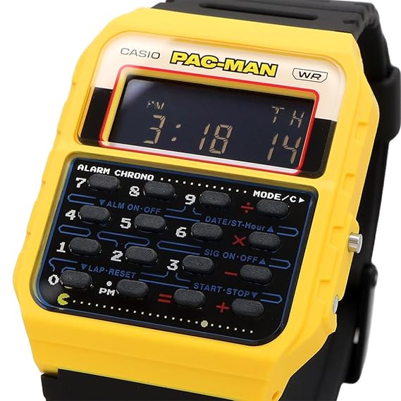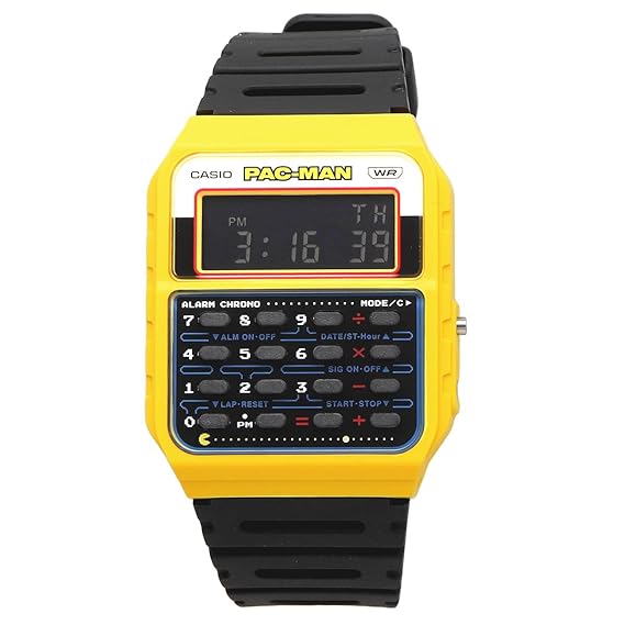 Casio Pac-Man Collection Unisex Calculator Watch Yellow Dial with Black Resin Band, CA-53WPC-1BDR