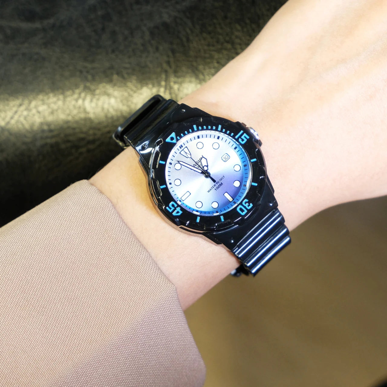 Casio Women's Watch Analog, White & Blue Dial Black Resin Strap, LRW-200H-2EVDR