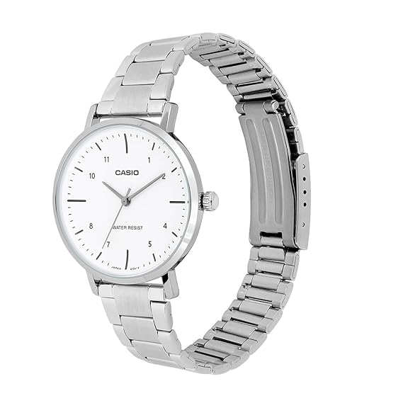 Casio Women's Watch Analog White Dial with Silver Stainless Steel Band, LTP-VT03D-7BDF