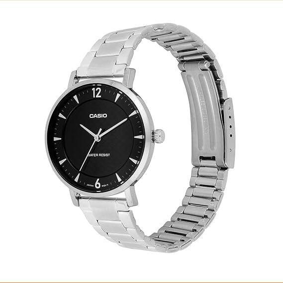 Casio Women's Watch Analog Black Dial with Silver Stainless Steel Band, LTP-VT04D-1ADF