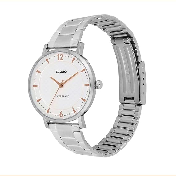 Casio Women's Watch Analog White Dial with Silver Stainless Steel Band, LTP-VT04D-7ADF