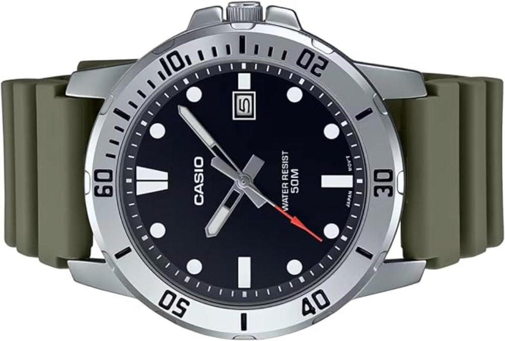 Casio, Men's Watch Analog, Black Dial Green Resin Band, MTP-VD01-3EVUDF