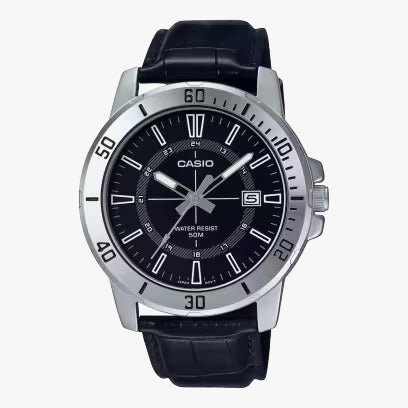 Casio Men's Watch, Black Dial Black Leather Strap, MTP-VD01L-1CVUDF