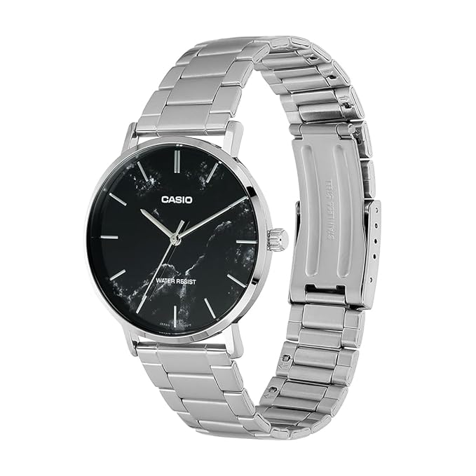 Casio Men's Watch Analog Black Dial with Silver Stainless Steel Band, MTP-VT01DM-1AUDF