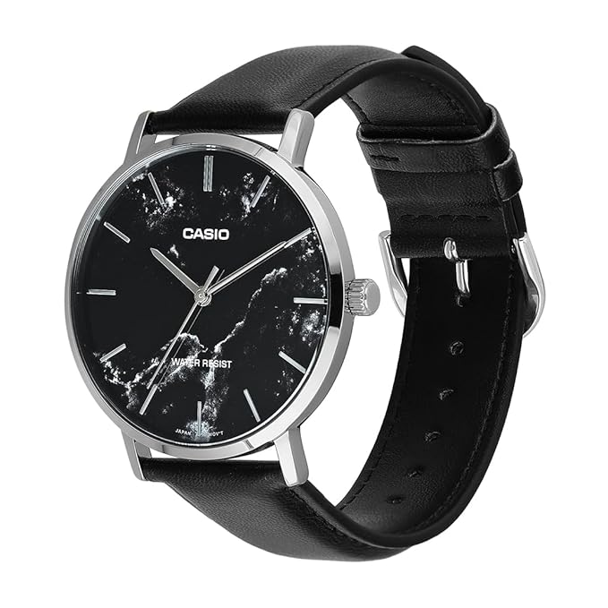 Casio Men's Watch Analog Black Dial with Black Leather Strap, MTP-VT01LM-1AUDF