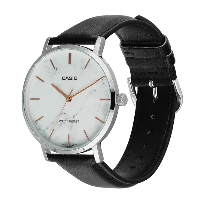 Casio Men's Watch Analog White Dial with Black Leather Strap, MTP-VT01LM-7AUDF
