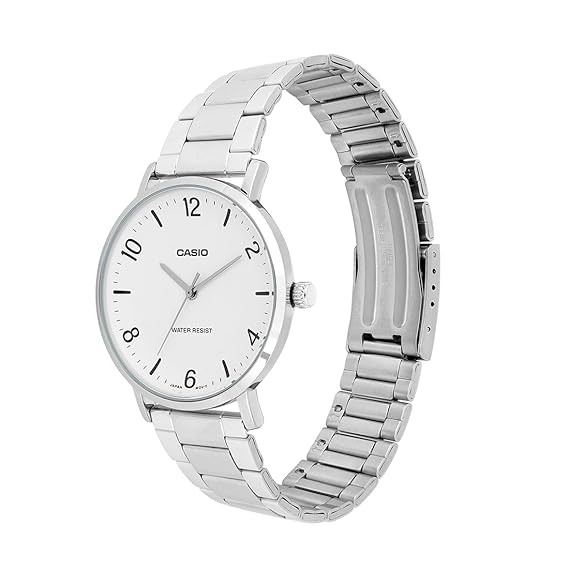 Casio Men's Watch Analog White Dial with Silver Stainless Steel Band, MTP-VT03D-7BDF
