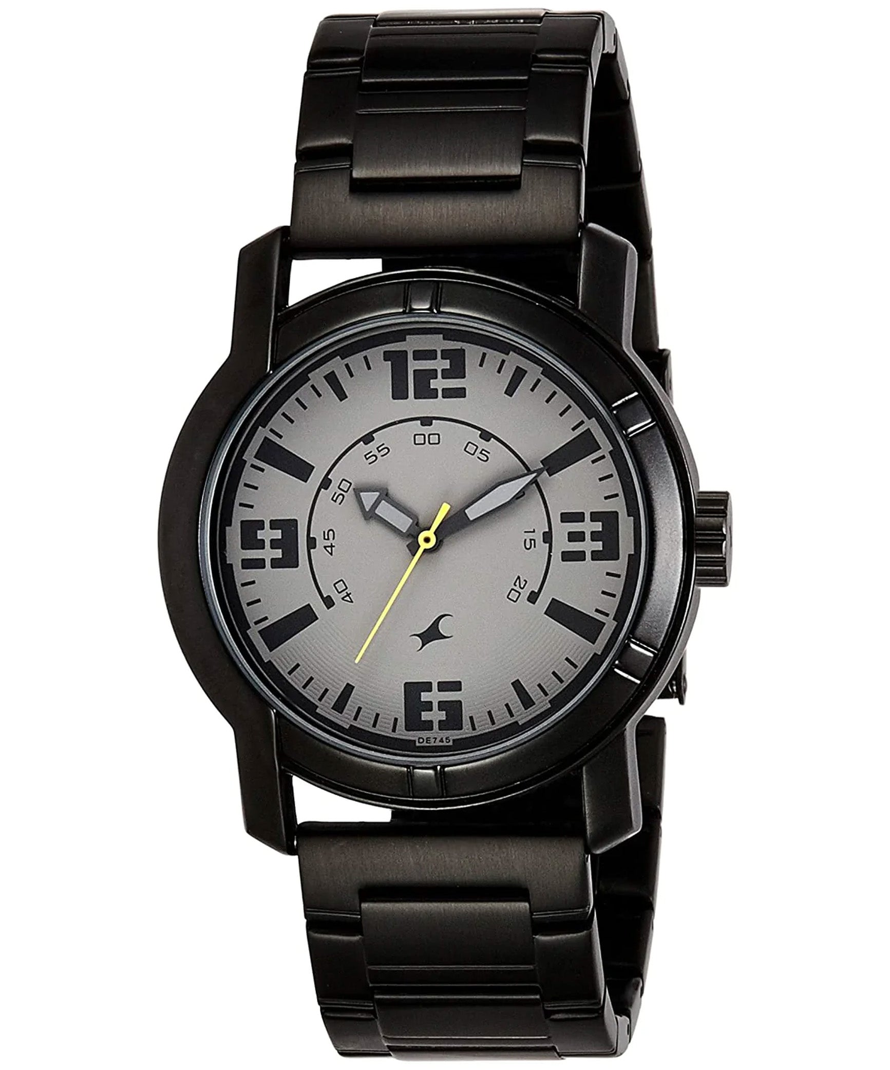 Fastrack Men's Watch Analog, White Dial Black Stainless Steel  Strap, 3021NM01
