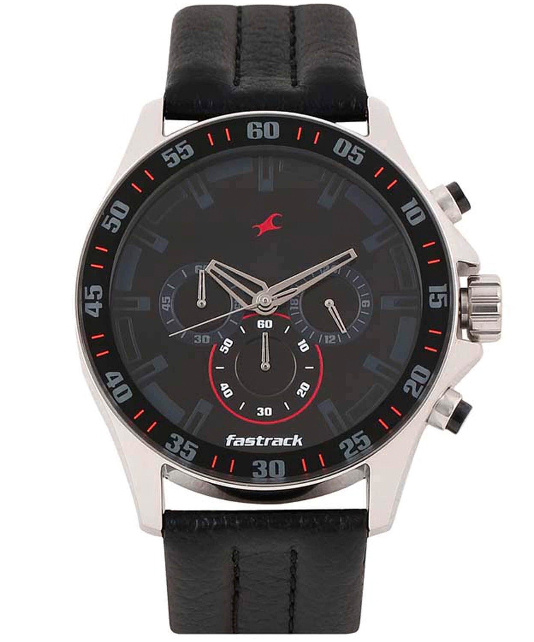 Fastrack Men's Watch Analog, Black Dial Black Leather Strap, 3072SL06