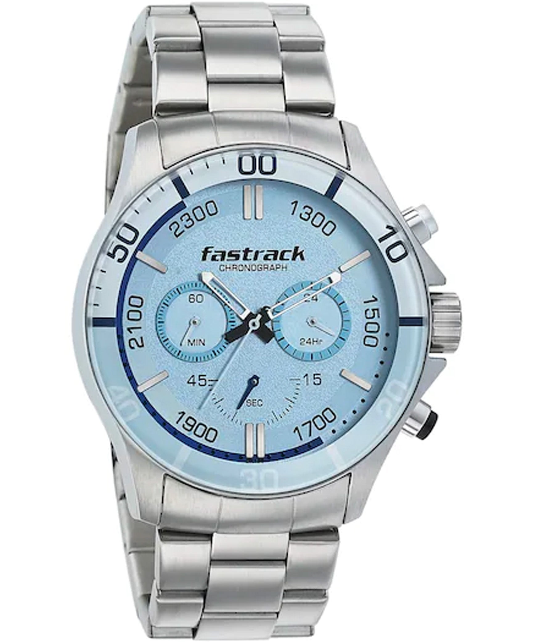 Fastrack Men's Watch Analog, Blue Dial Silver Stainless Steel Strap, 3072SM05