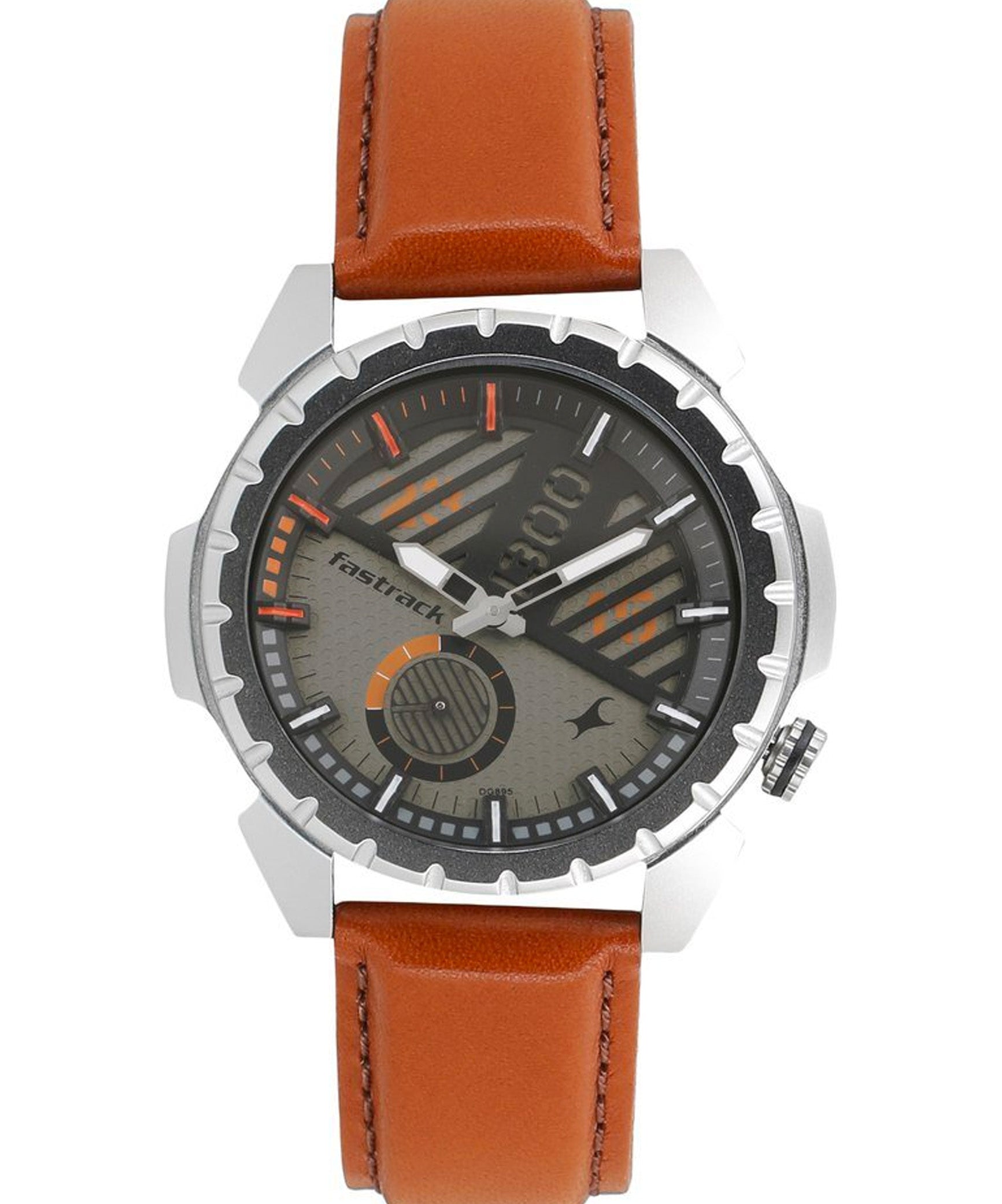 Fastrack Men's Watch Analog, Grey Dial Brown Leather Strap, 3090SL03