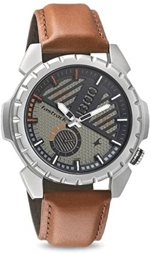Fastrack Men's Watch Analog, Grey Dial Brown Leather Strap, 3090SL04