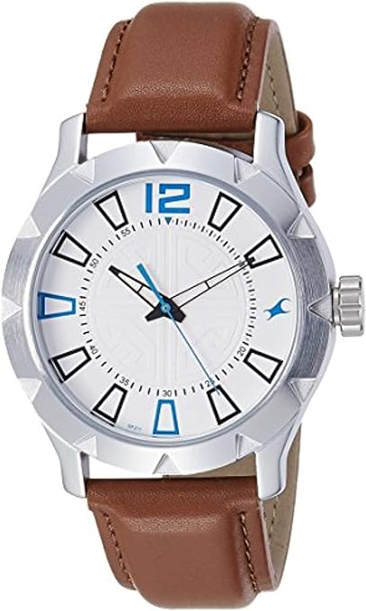 Fastrack Men's Watch Analog, White Dial Brown Leather Strap, 3139SL02