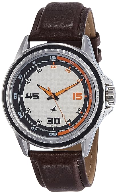 Fastrack Men's Watch Analog, White Dial Brown Leather Strap, 3142SL02