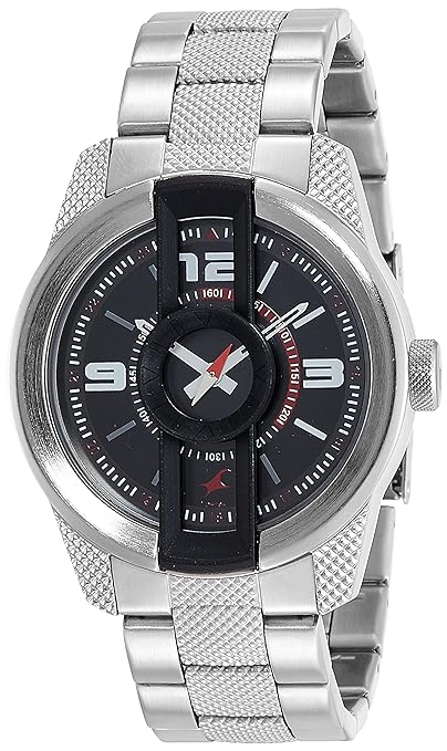 Fastrack Men's Watch Analog, Black Dial Silver Stainless Steel Strap, 3152KM01