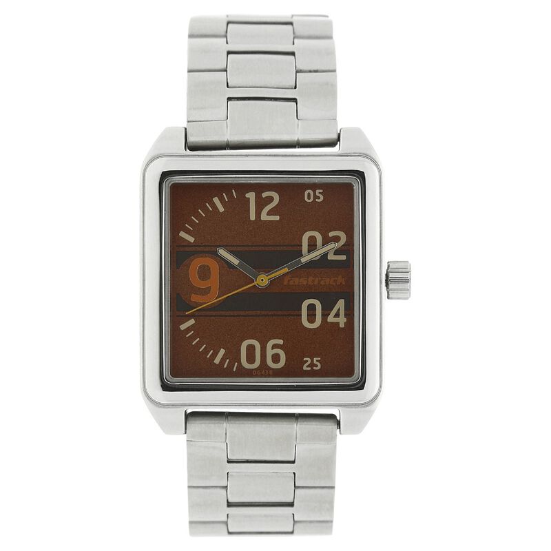 Fastrack Men's Watch Analog,Brown Dial Silver Stainless Steel Strap, 3164SM02