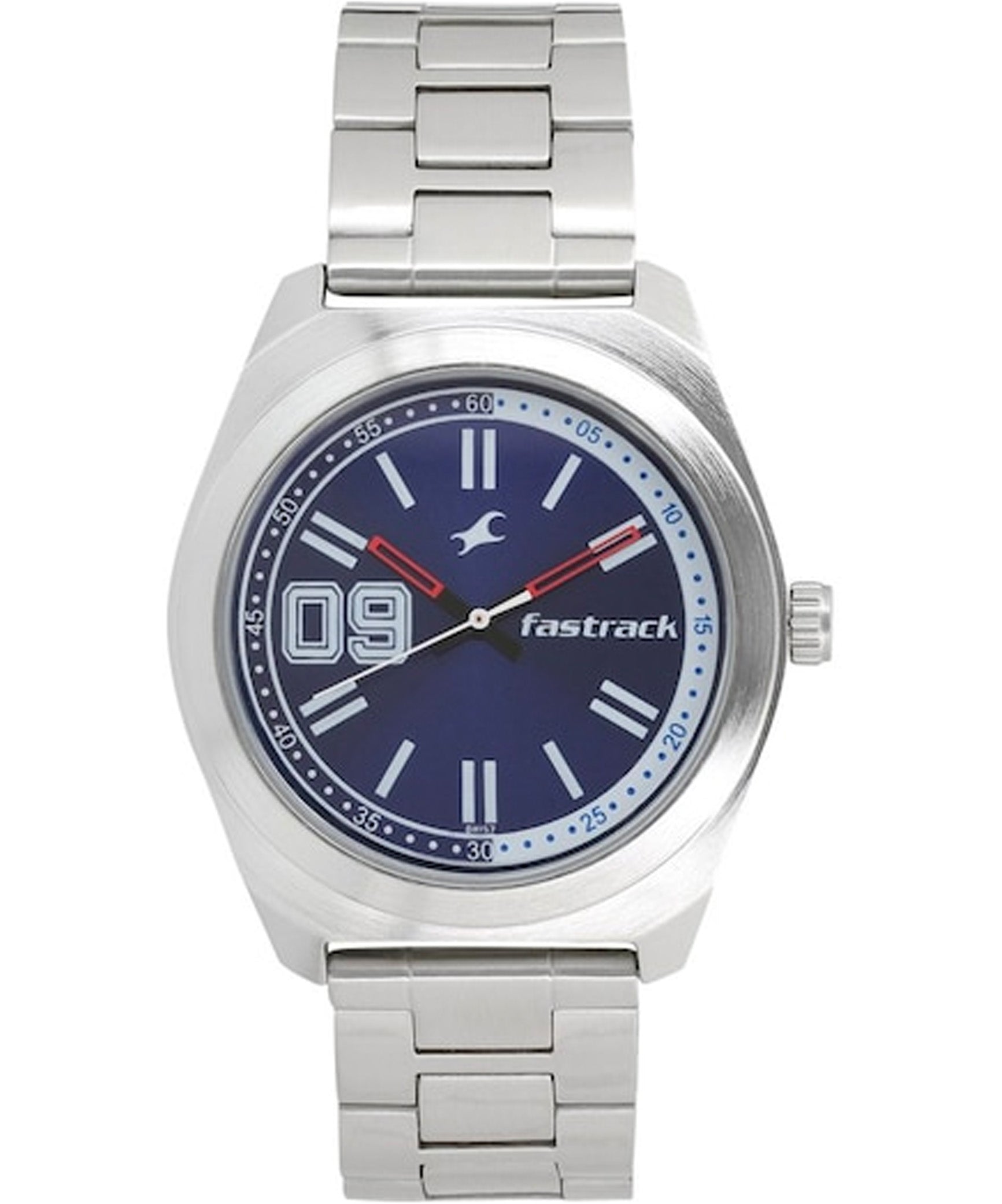 Fastrack, Men's Watch Varsity Collection Analog, Blue Dial Silver Stainless Steel Strap, 3174SM02