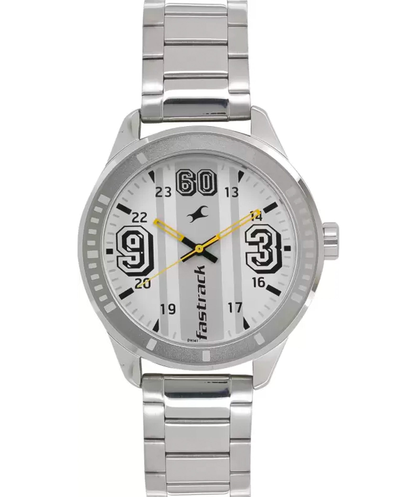 Fastrack, Men's Watch Varsity Collection Analog, White Dial Silver Stainless Steel Strap, 3177SM02
