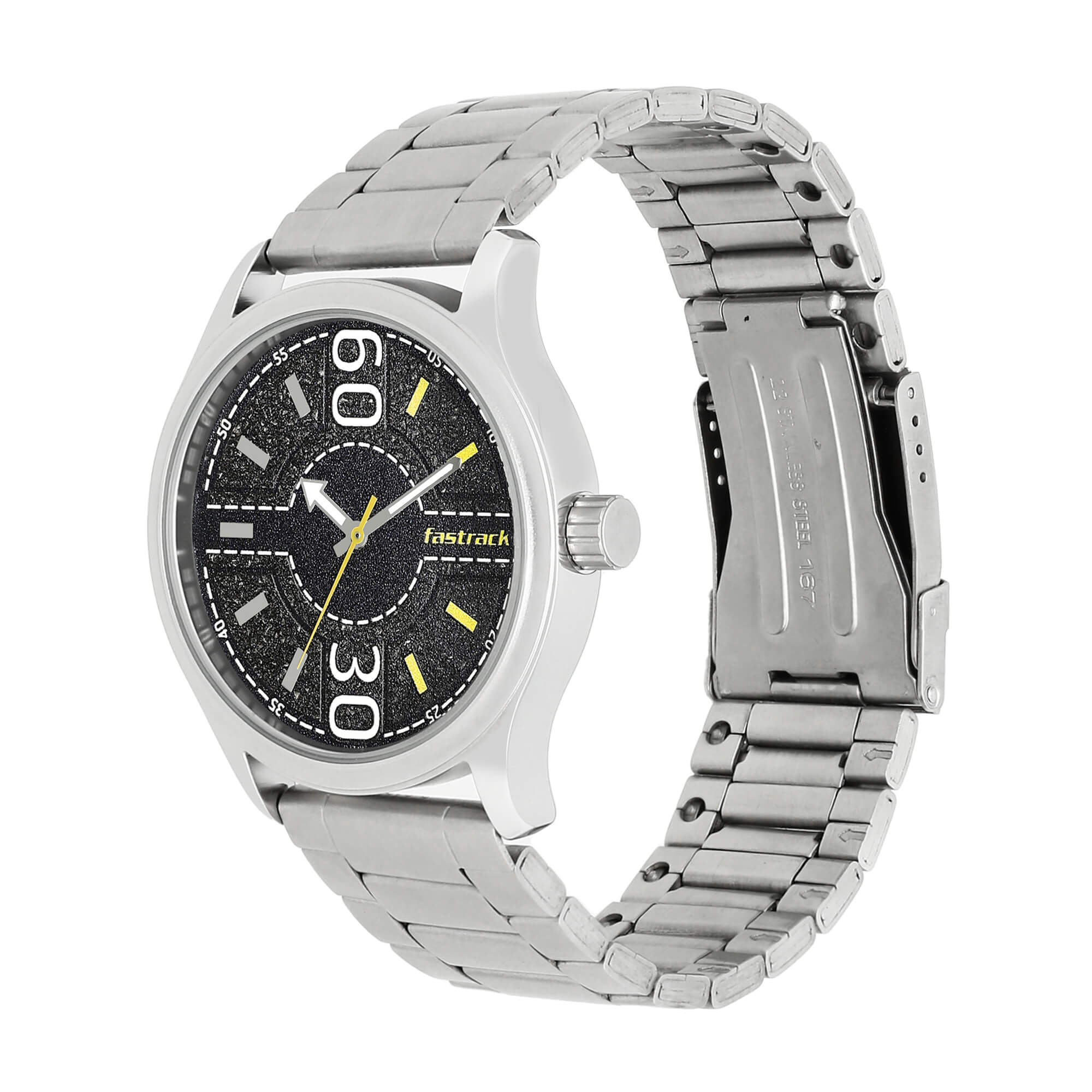 Fastrack, Men's Watch Analog , Black Dial Silver Stainless Steel Strap, 3197SM02