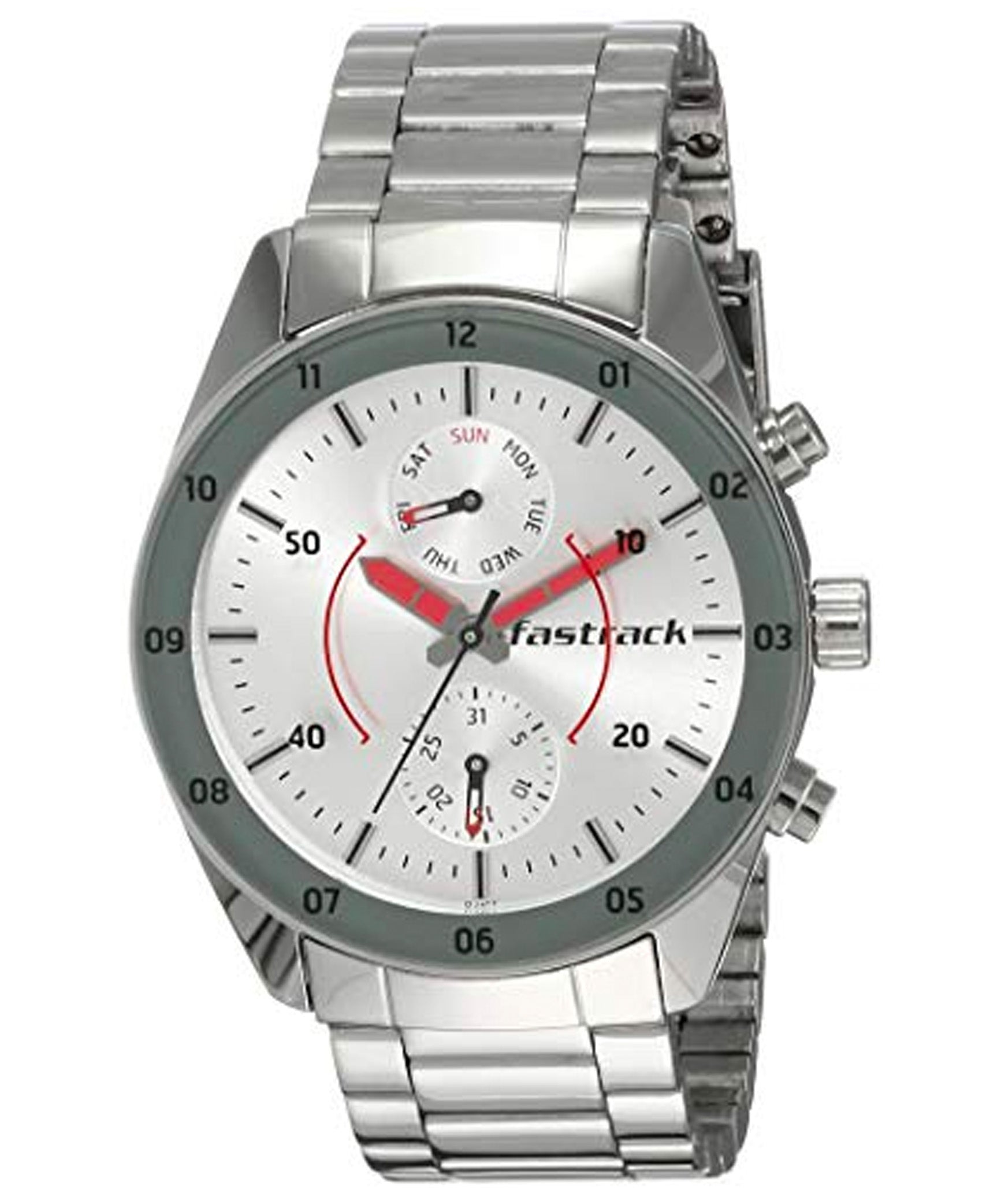 Fastrack, Men's Watch Space Rover Collection Analog , Silver Dial Silver Stainless Steel Band, 3201SM01