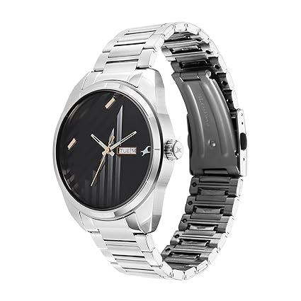 Fastrack Fleek Men's Watch Analog Black Dial with Silver Stainless Steel Band, 3313SM01