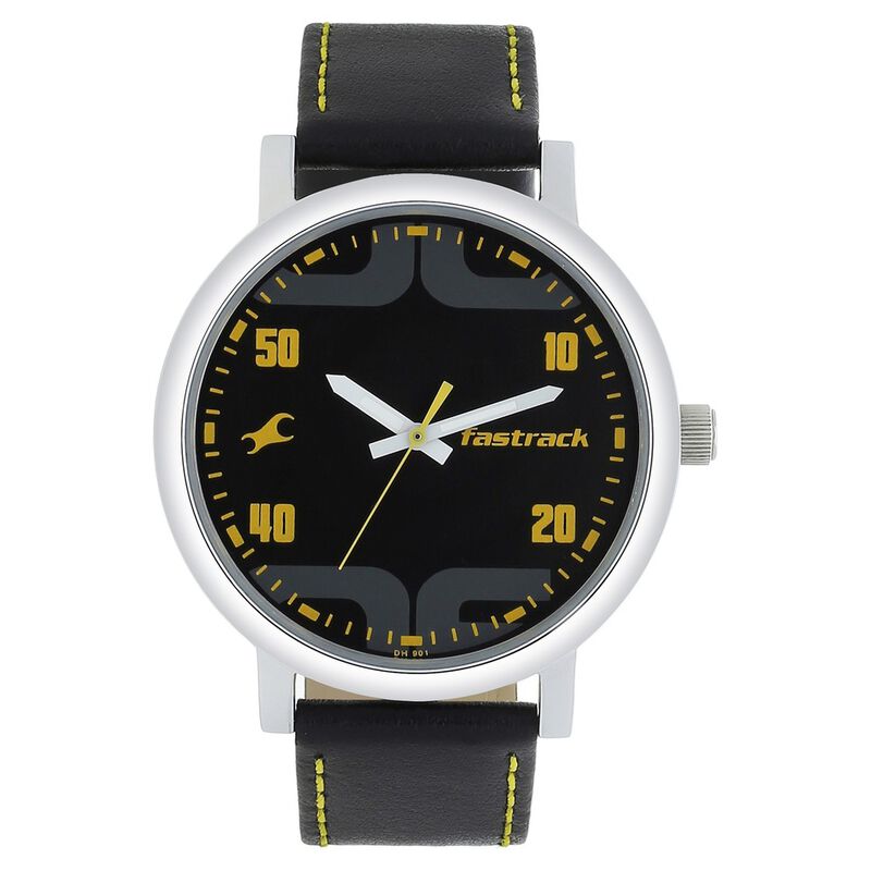 Fastrack, Men's Watch Analog, Black Dial Black Leather Strap, 38052SL05