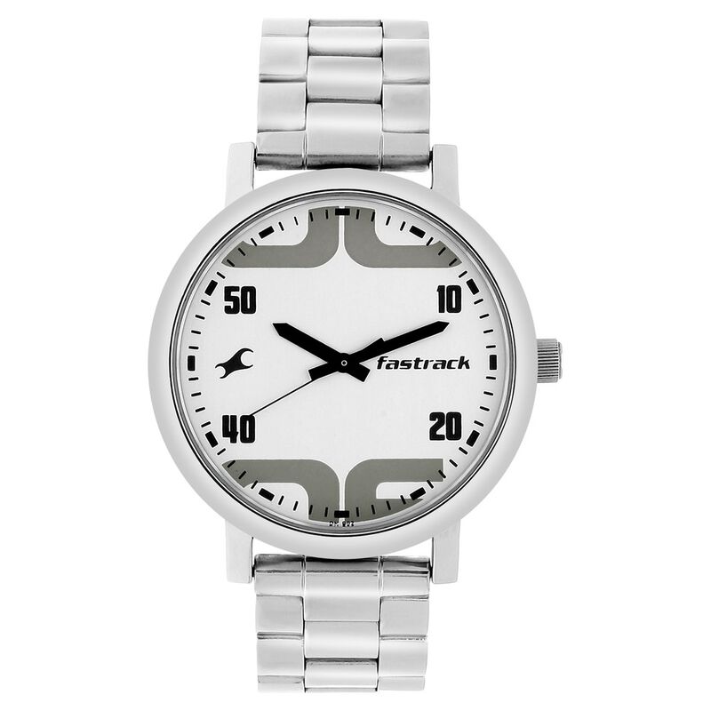 Fastrack, Men's Watch Analog, White Dial Silver Stainless Steel Strap, 38052SM04