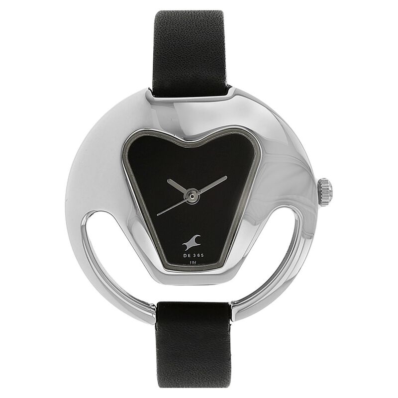 Fastrack, Women's Watch Analog, Black Dial Black Leather Strap, 6103SL02