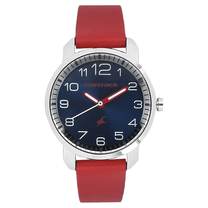 Fastrack, Women's Watch Analog, Blue Dial Red Leather Strap, 6111SL02