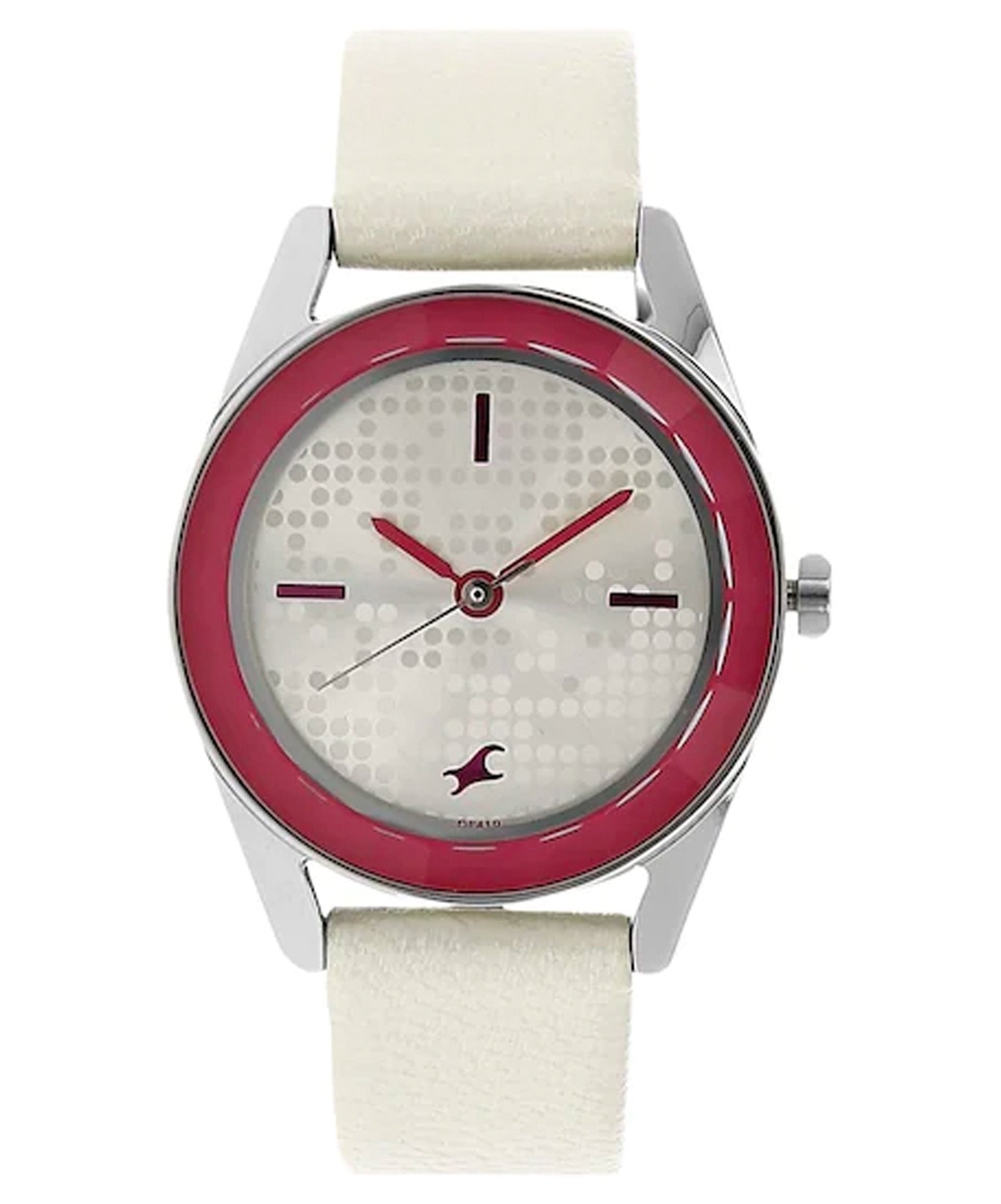 Fastrack, Women's Watch Analog, Silver Dial White Leather Band, 6144SL01