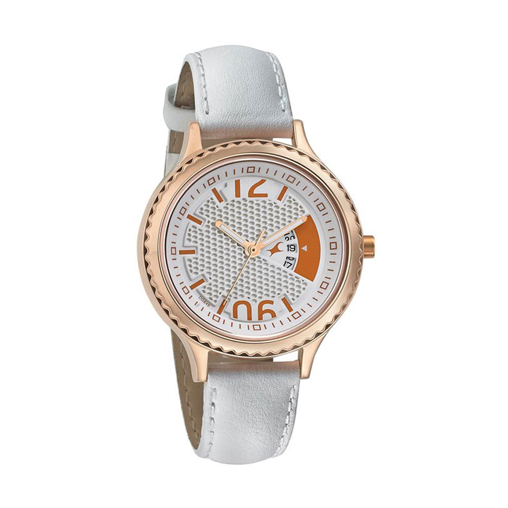 Fastrack, Women's Watch Analog, White Dial White Leather Strap, 6168WL01