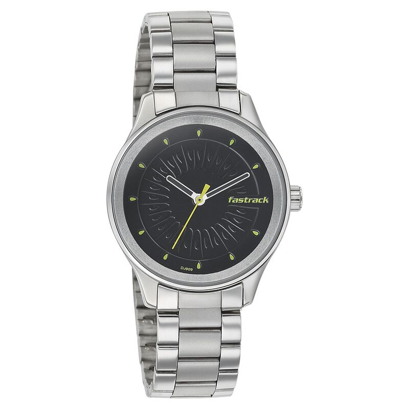 Fastrack, Women's Watch Analog, Black Dial Silver Stainless Steel Strap, 6203sm02