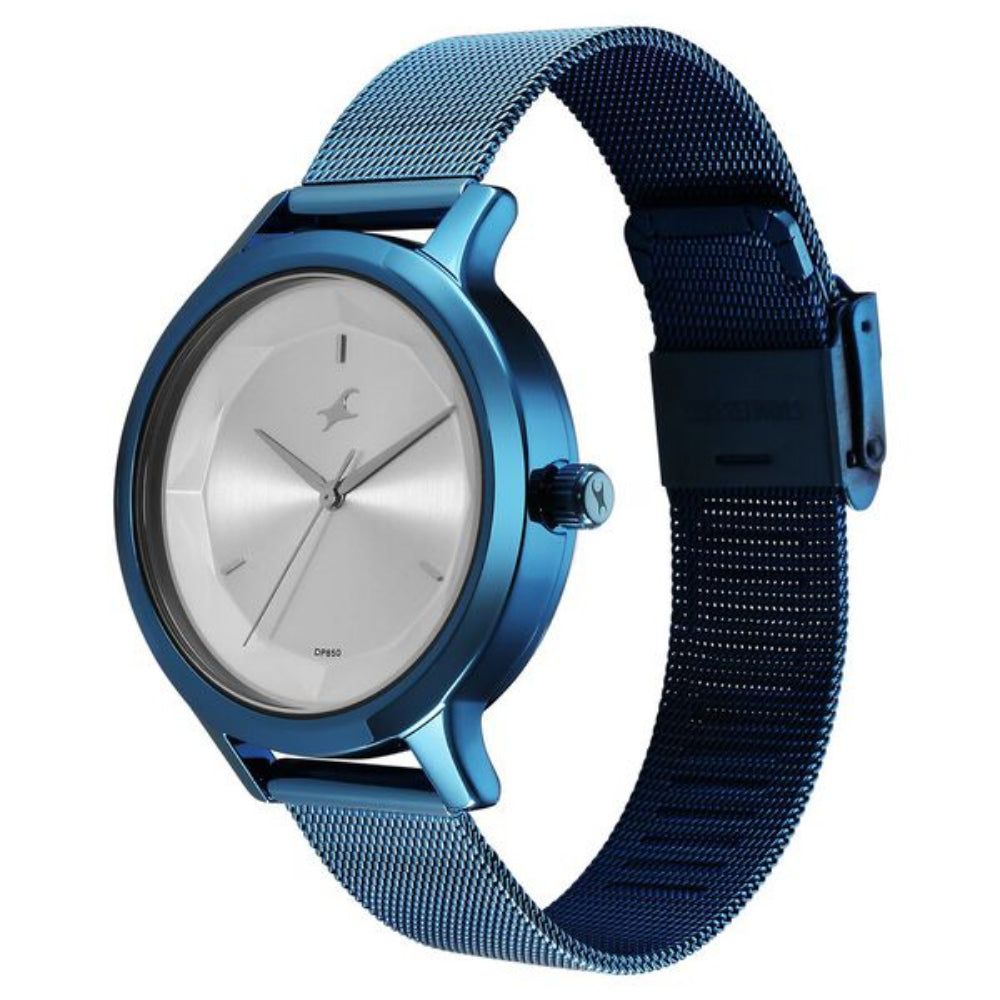 Fastrack Fleek Women's Watch Analog Silver Dial with Blue Mesh Band, 6210QM01