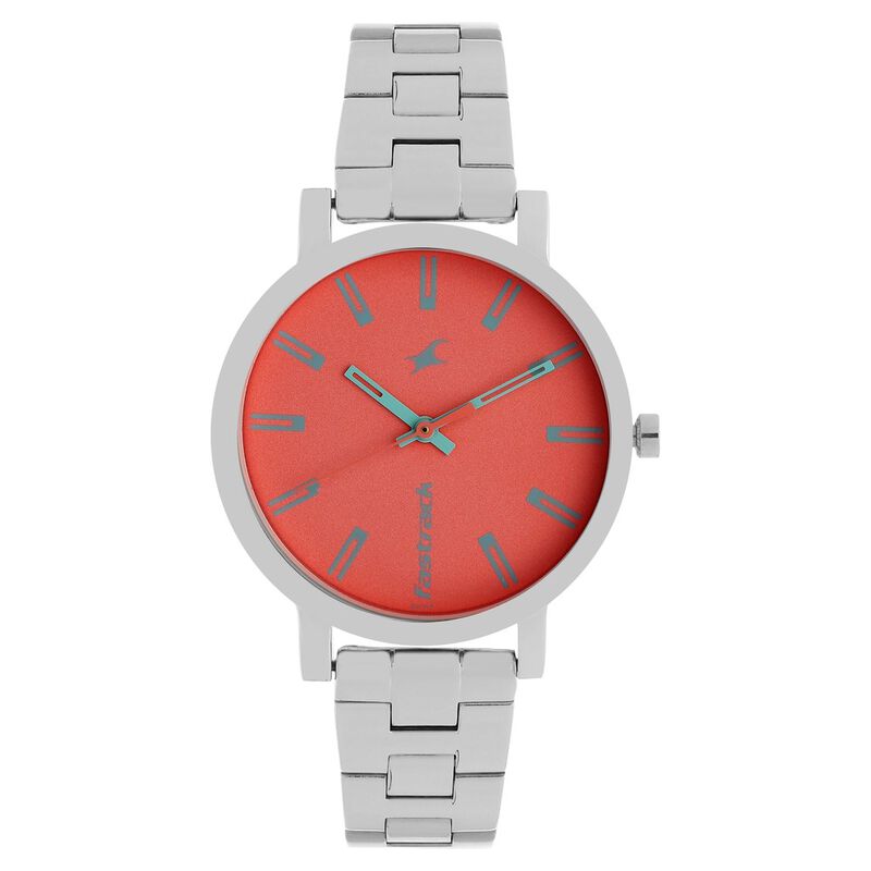 Fastrack, Women's Watch Analog, Red Dial Silver Stainless Steel Strap , 68010SM03